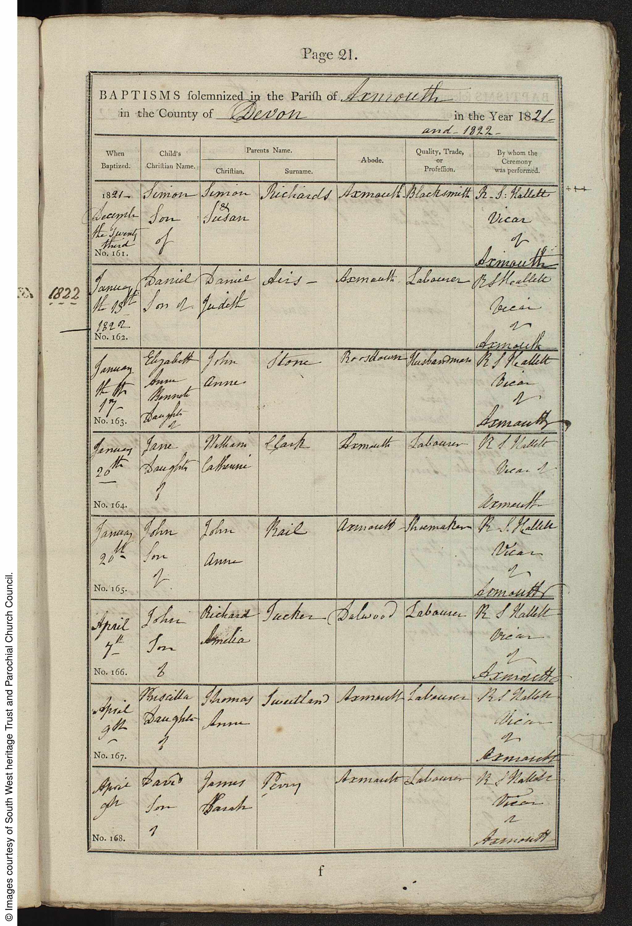 Cited from Parish Registers of St. Michael, Axmouth, Devon (Church of England)