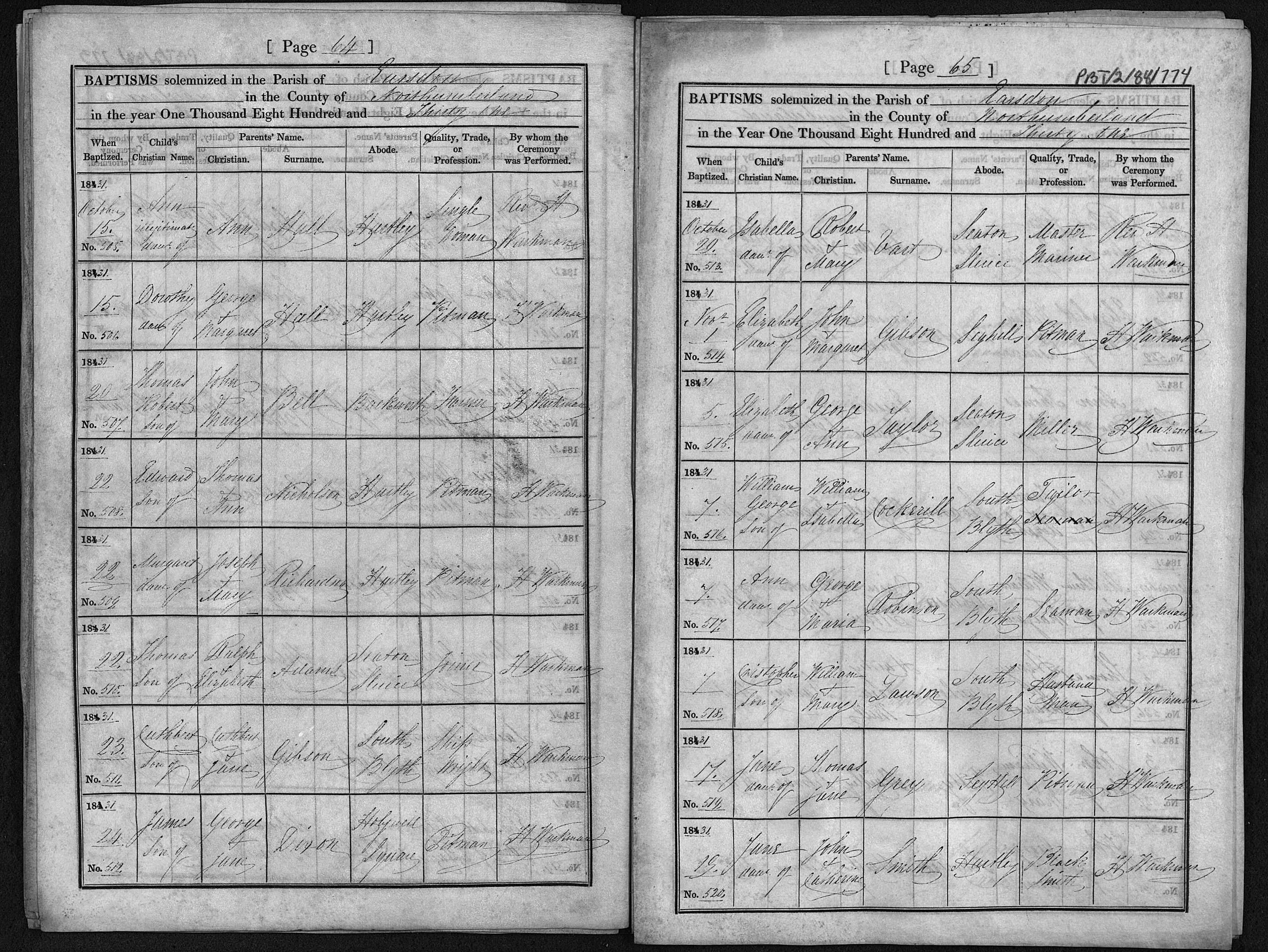 - George Hall★ was resident on 15 Oct, 1831 in Hartley, Northumberland, England