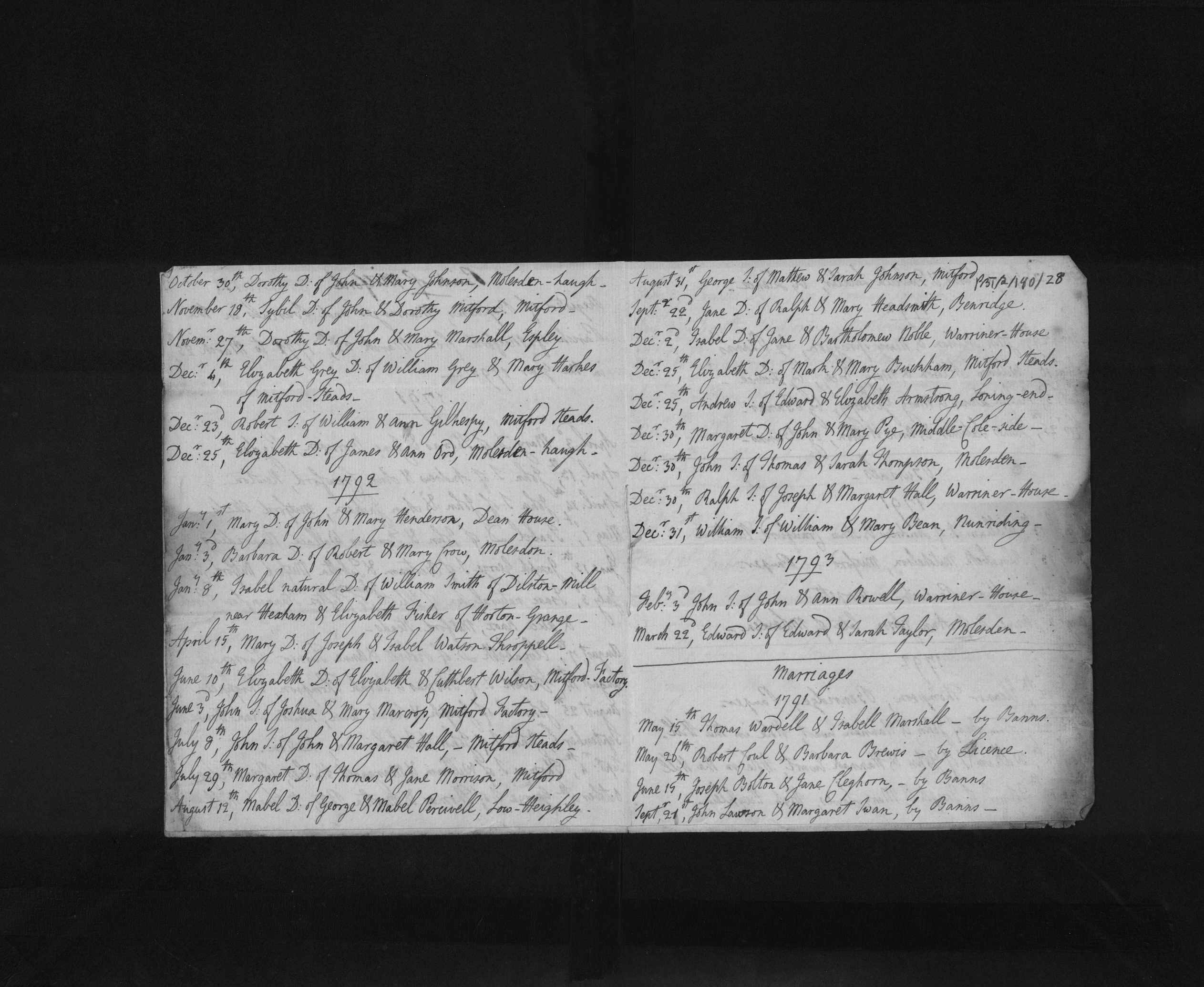 - Cuthbert Wilson★ was resident on 10 Jun, 1792 at Mitford Factory, Mitford, Northumberland, England
