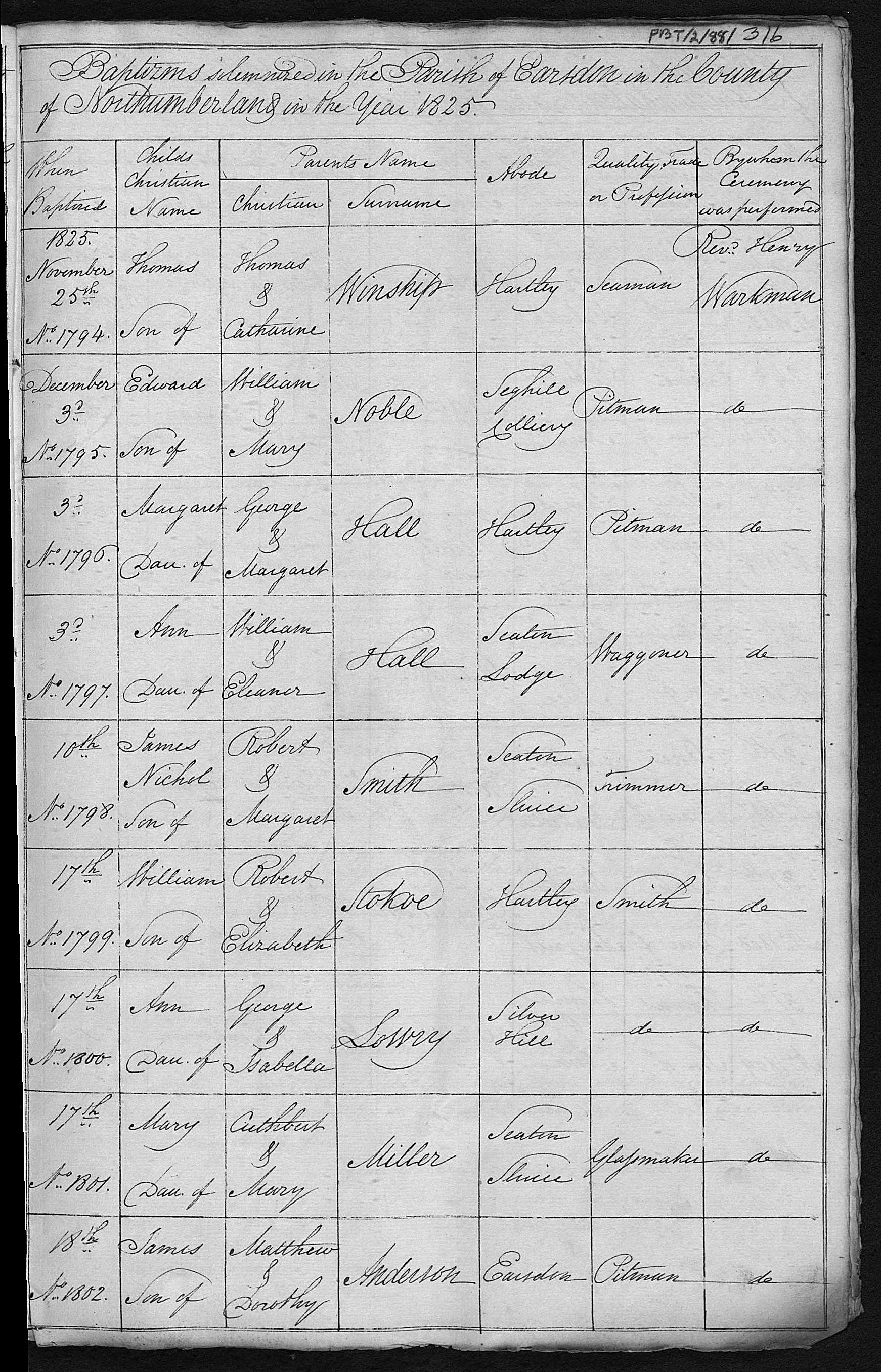 - Cuthbert Miller★ was resident on 17 Dec, 1825 in Seaton Sluice, Northumberland, England