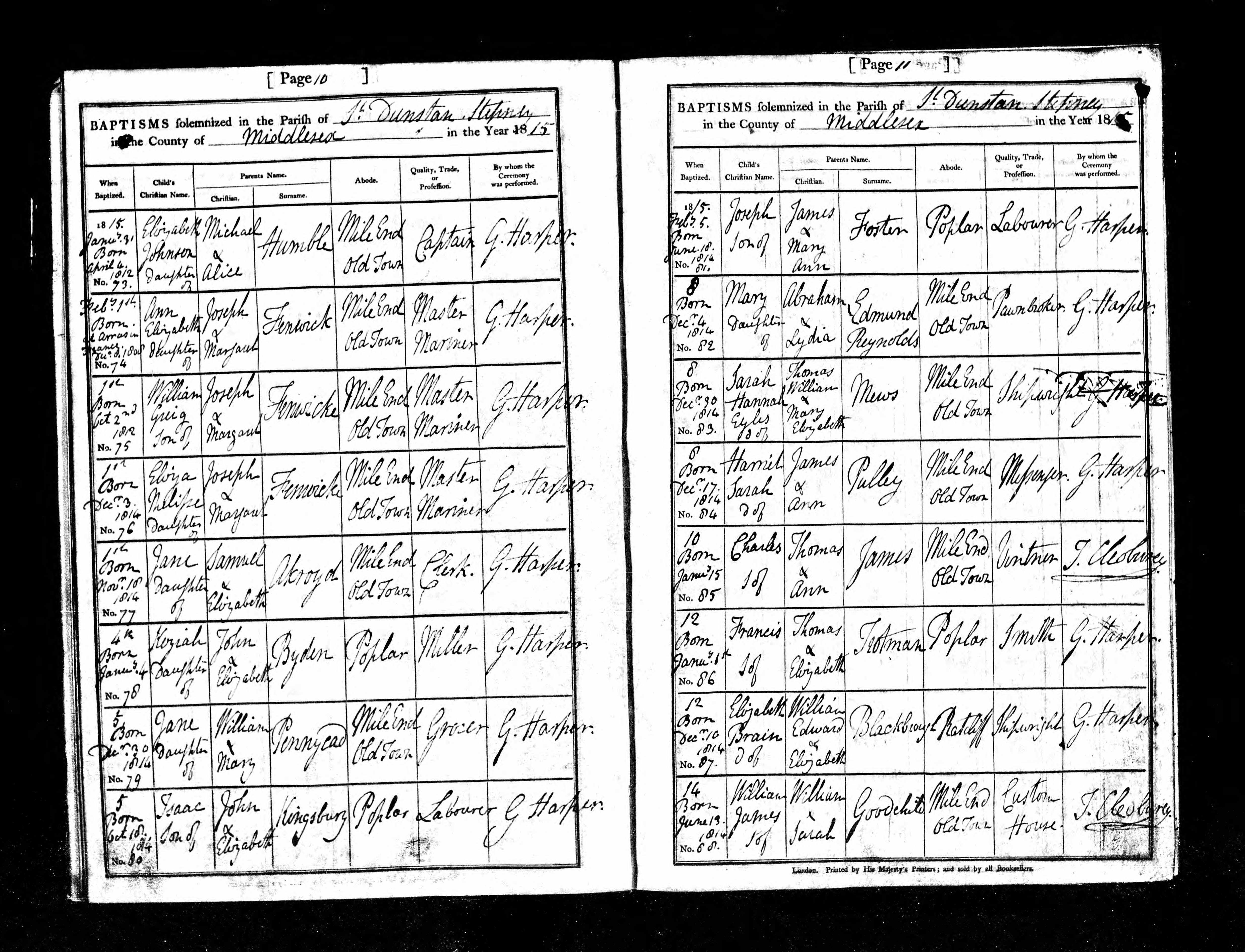 Cited from Parish Registers of St Dunstan and All Saints, Stepney, Middlesex (Church of England)