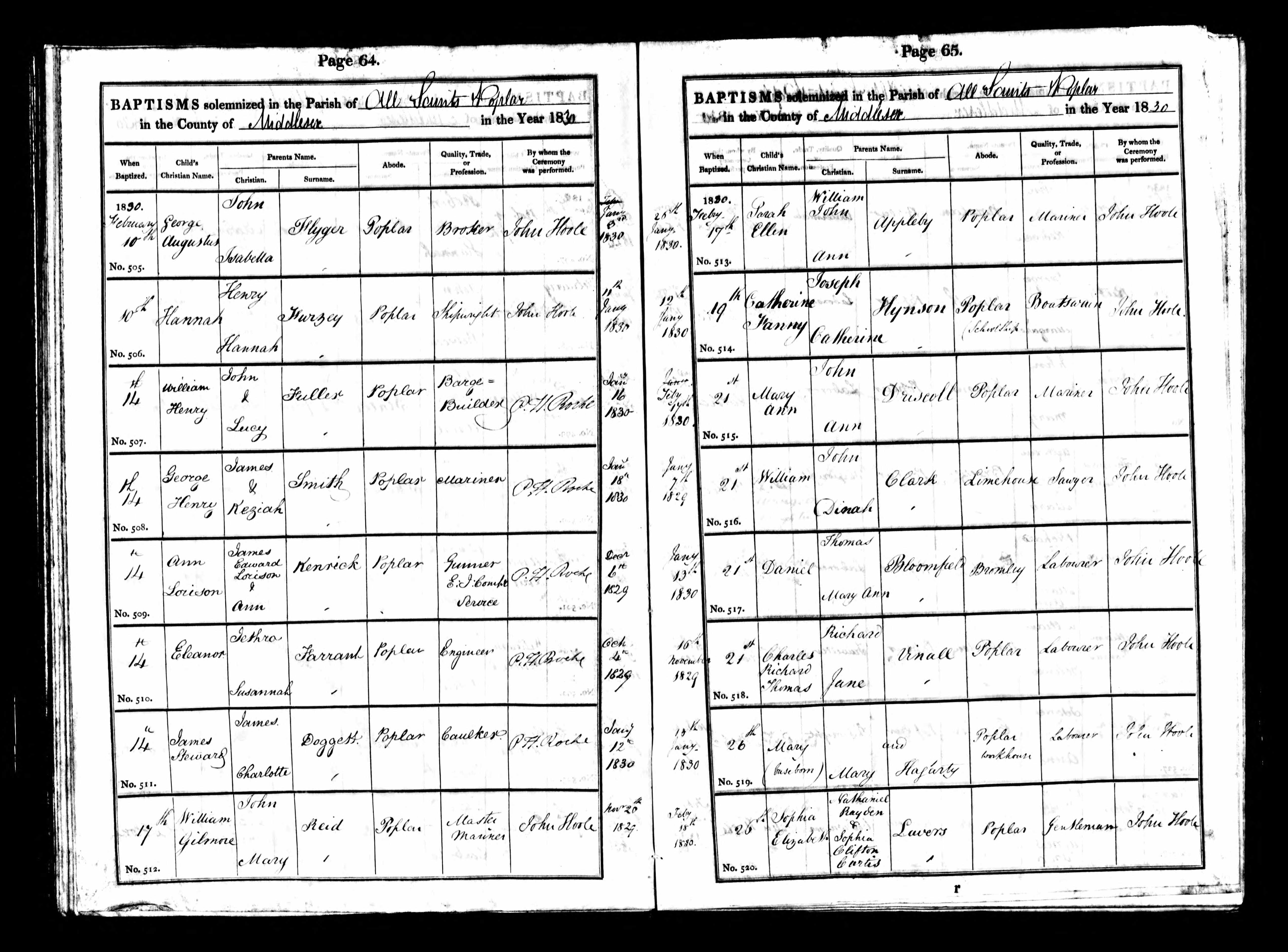 Cited from Parish Registers of All Saints, Poplar, Middlesex (Church of England)
