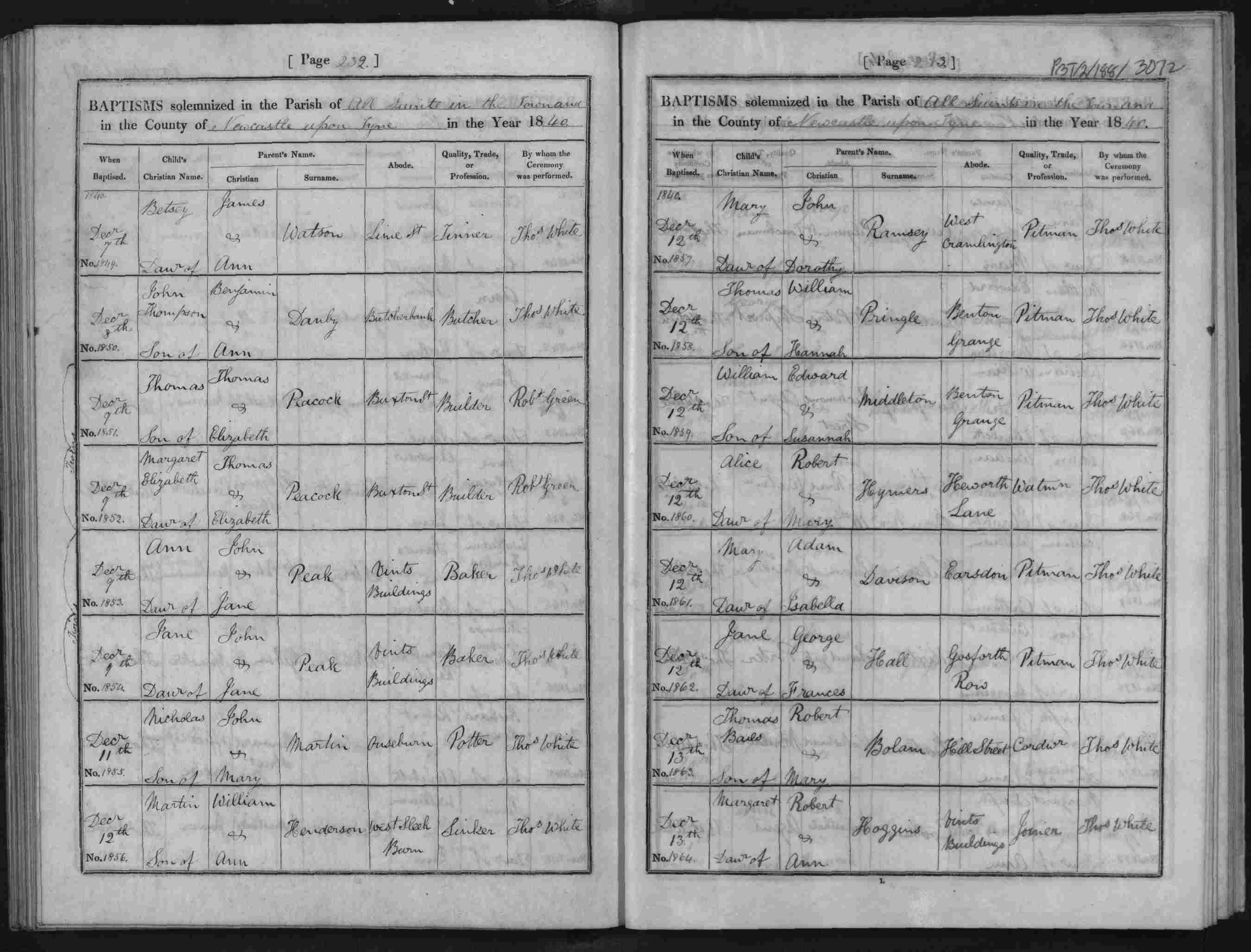 - Ann Peak was baptised on 9 Dec, 1840 in Newcastle All Saints, Newcastle upon Tyne, Northumberland, England