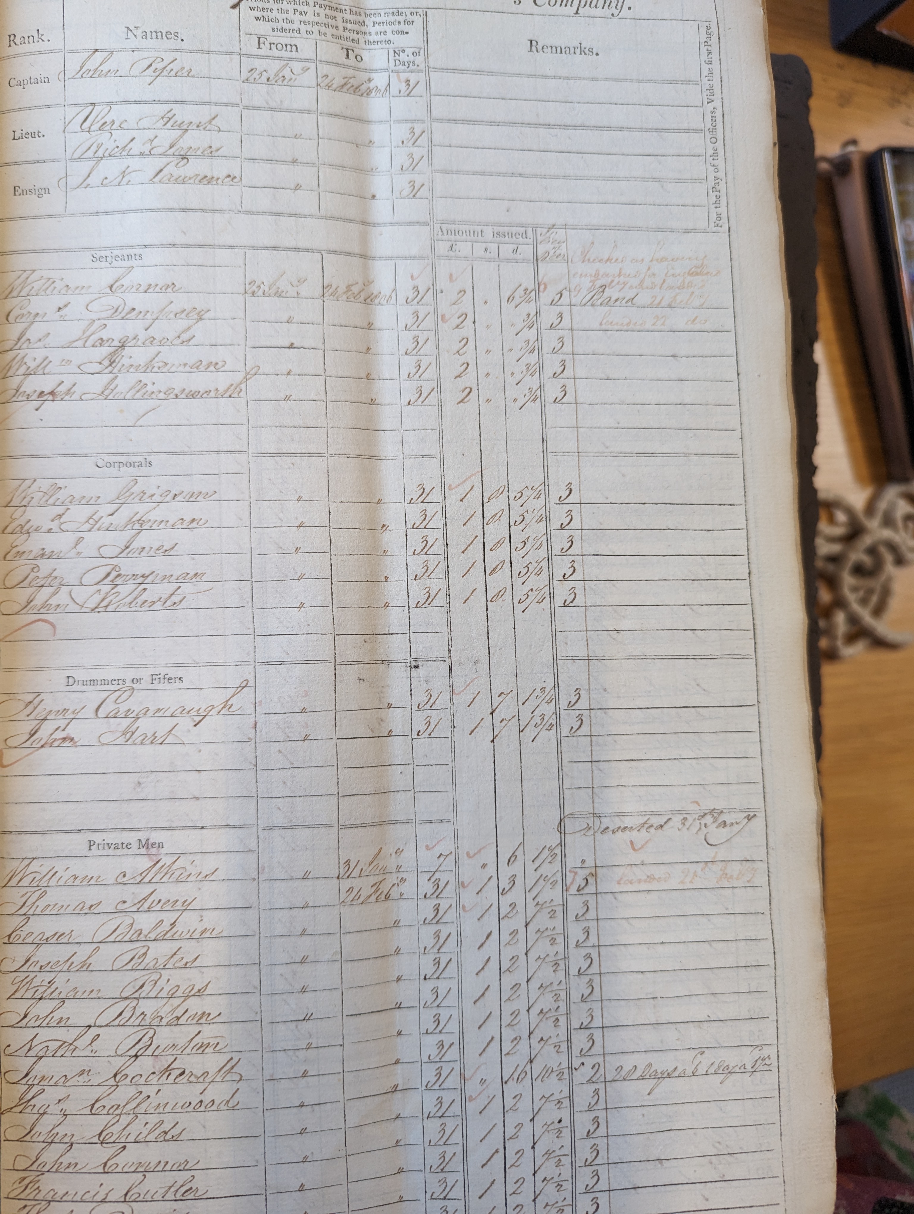 Cited from General Muster Books and Pay Lists, WO 12/2204, 4th Foot 1st Battalion, 1806-1808 (Commissary General of Musters Office and successors)