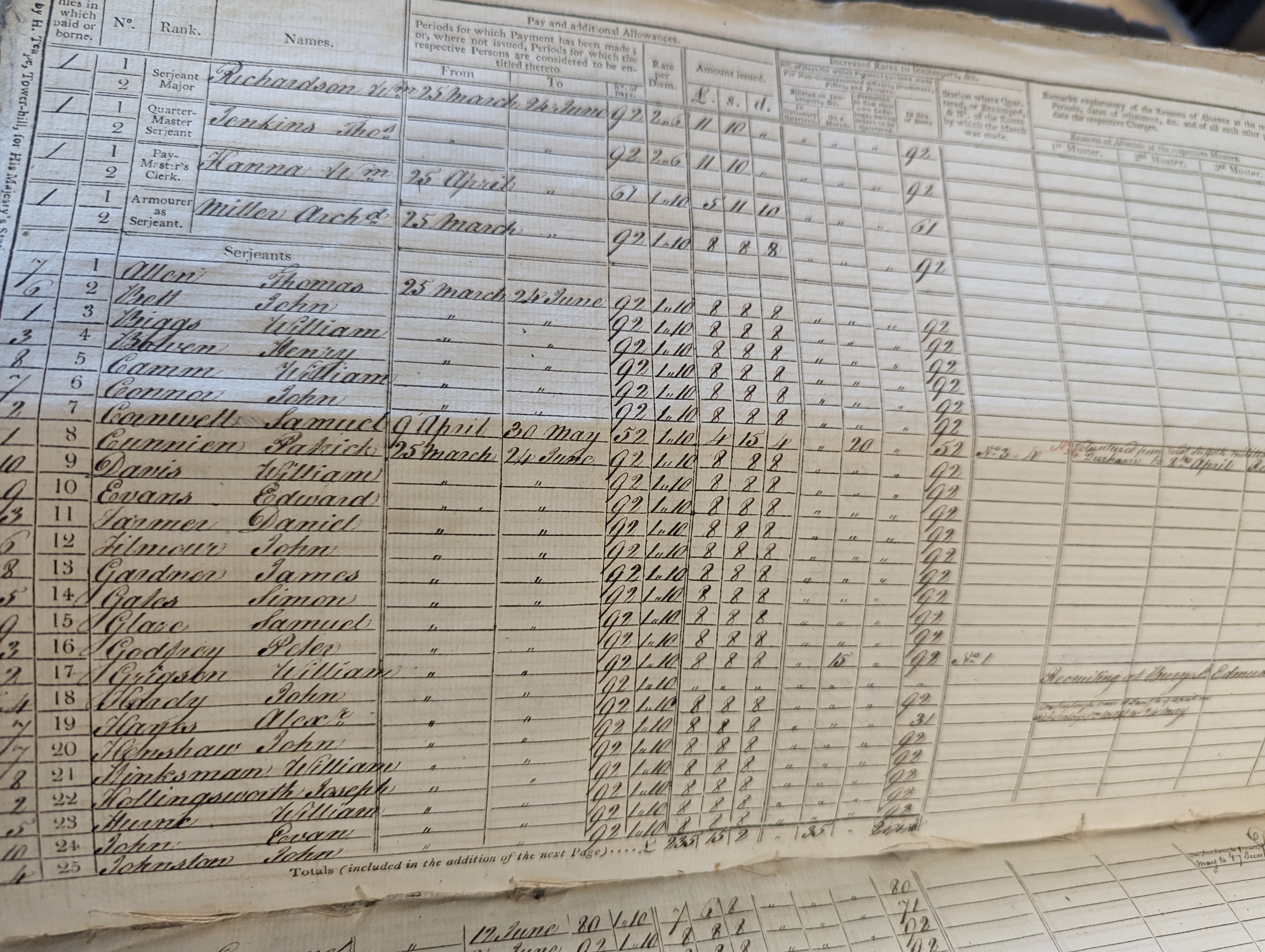 William Hinksman, sergeant, paid 25 Mar to 24 Jun, 92 days, 92 days paied in lieu of beer. No remarks.