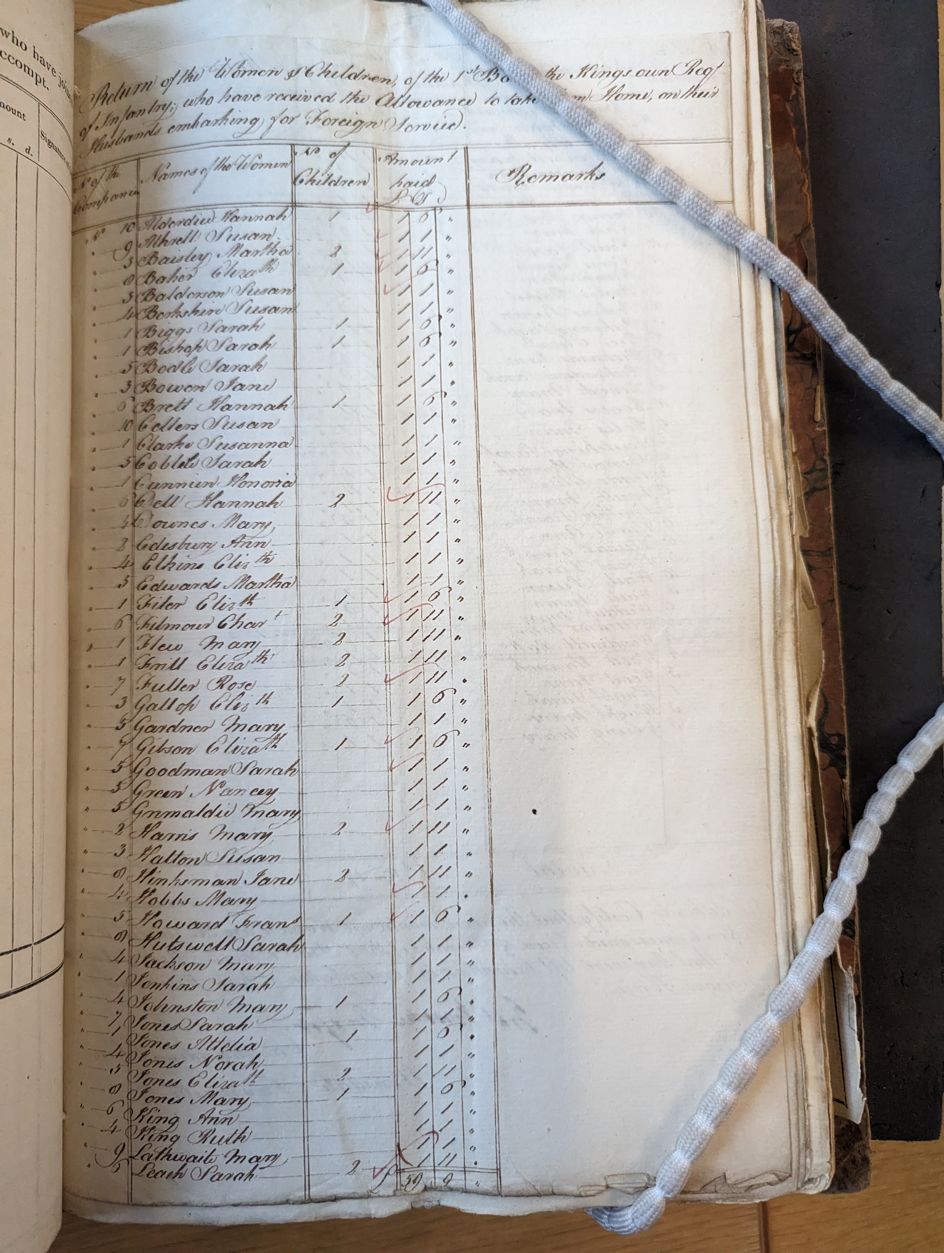 General Muster Books and Pay Lists, WO 12/2205, 4th Foot 1st Battalion, 1809-1811; 25 Sep 1810 to 24 Dec 1810, Infantry at Home, Return of the allowances paid to women and children, Jane Hinksman.