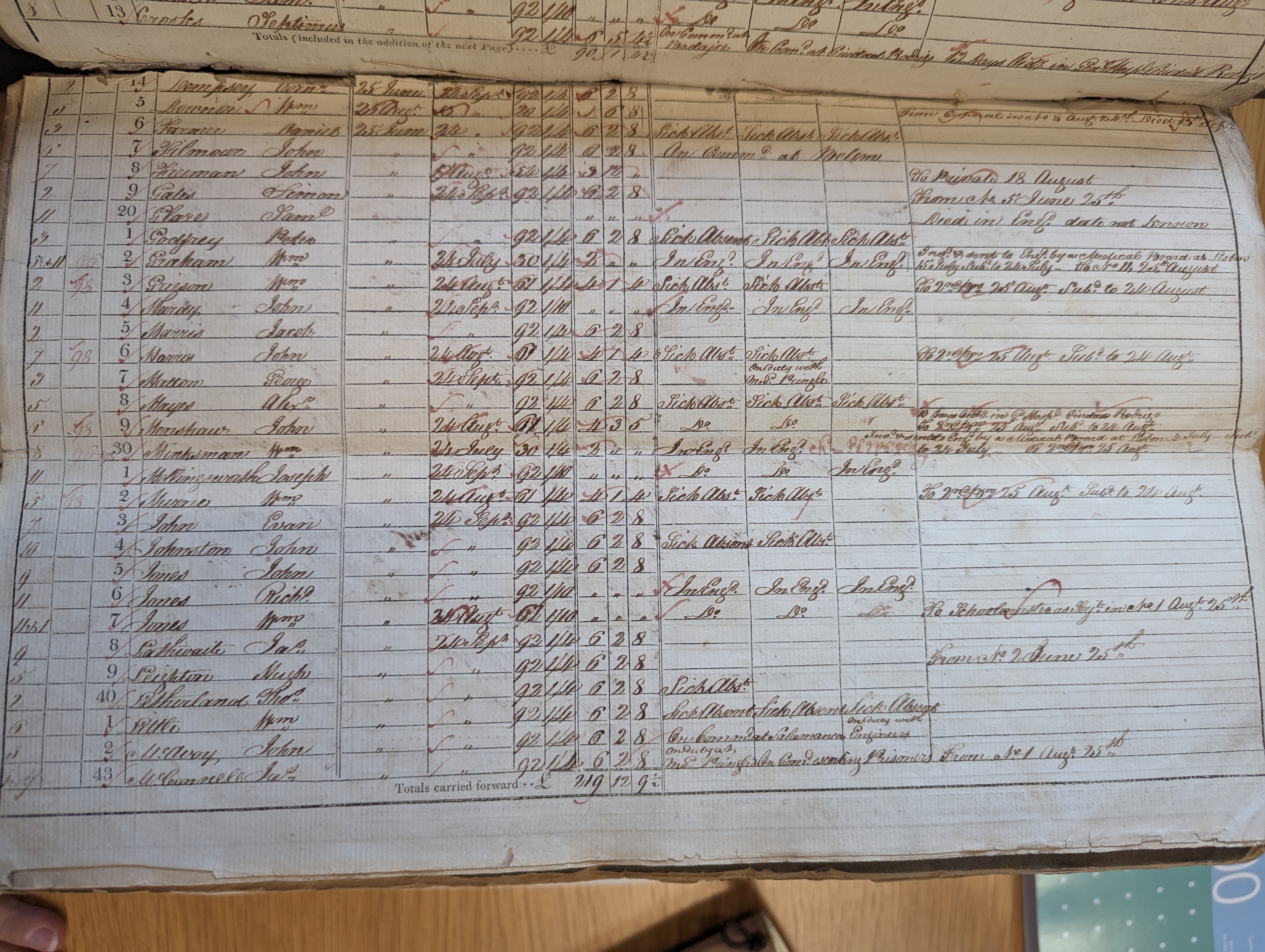 Wm Hinksman, sergeant, company 8. Absent from the first two musters with the reason “In Engd”. Remarks: “Invd and sent to England by a Medical Board at Lisbon 4 July. Subd to 24 July. To 2nd Bn 25 Aug.”