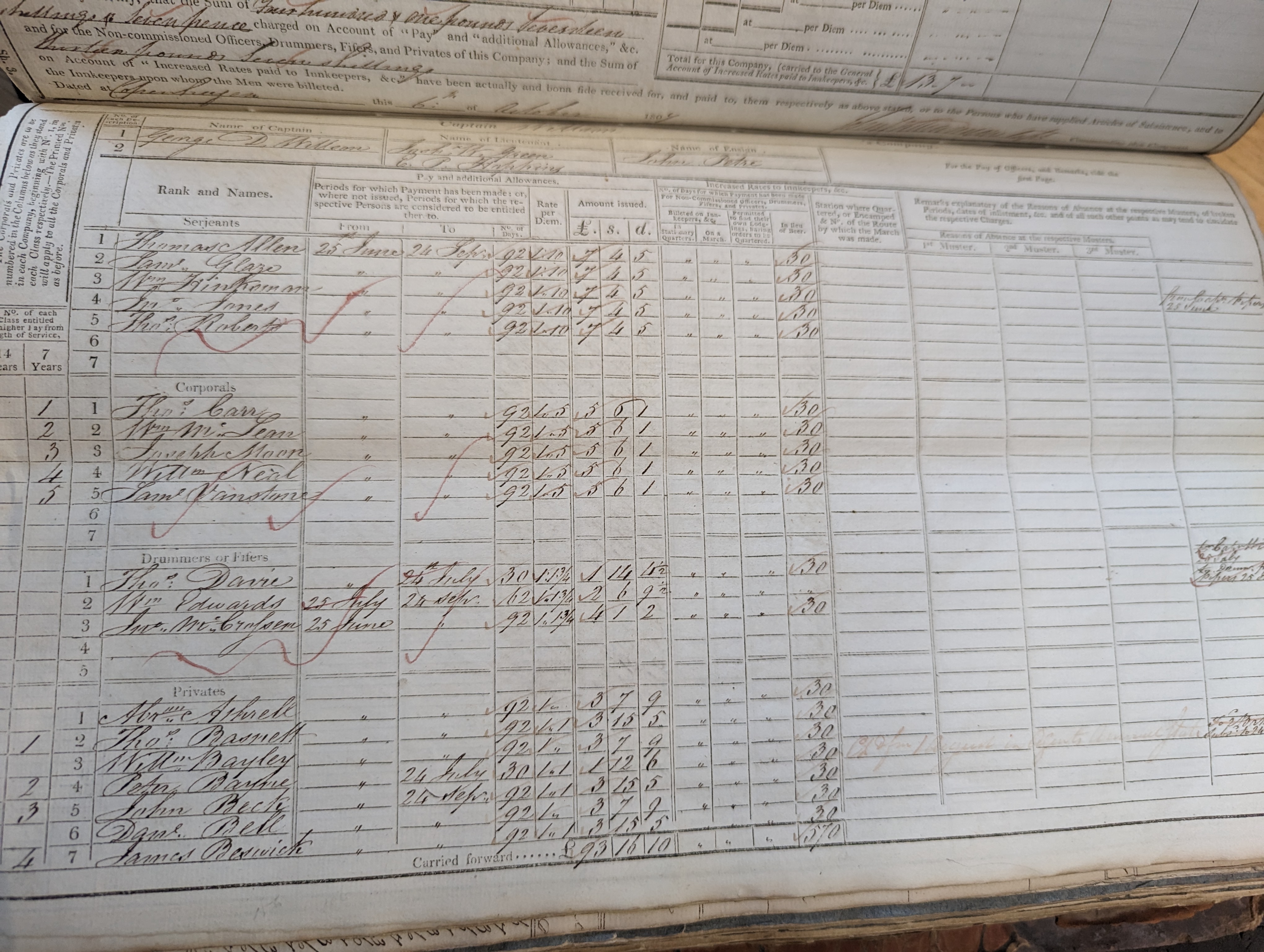 William Hinksman, sergeant in Captain Wilson’s company, paid 25 Jun to 24 Sep, 92 days. Remarks: “from Captain Piper’s 25 Jun”