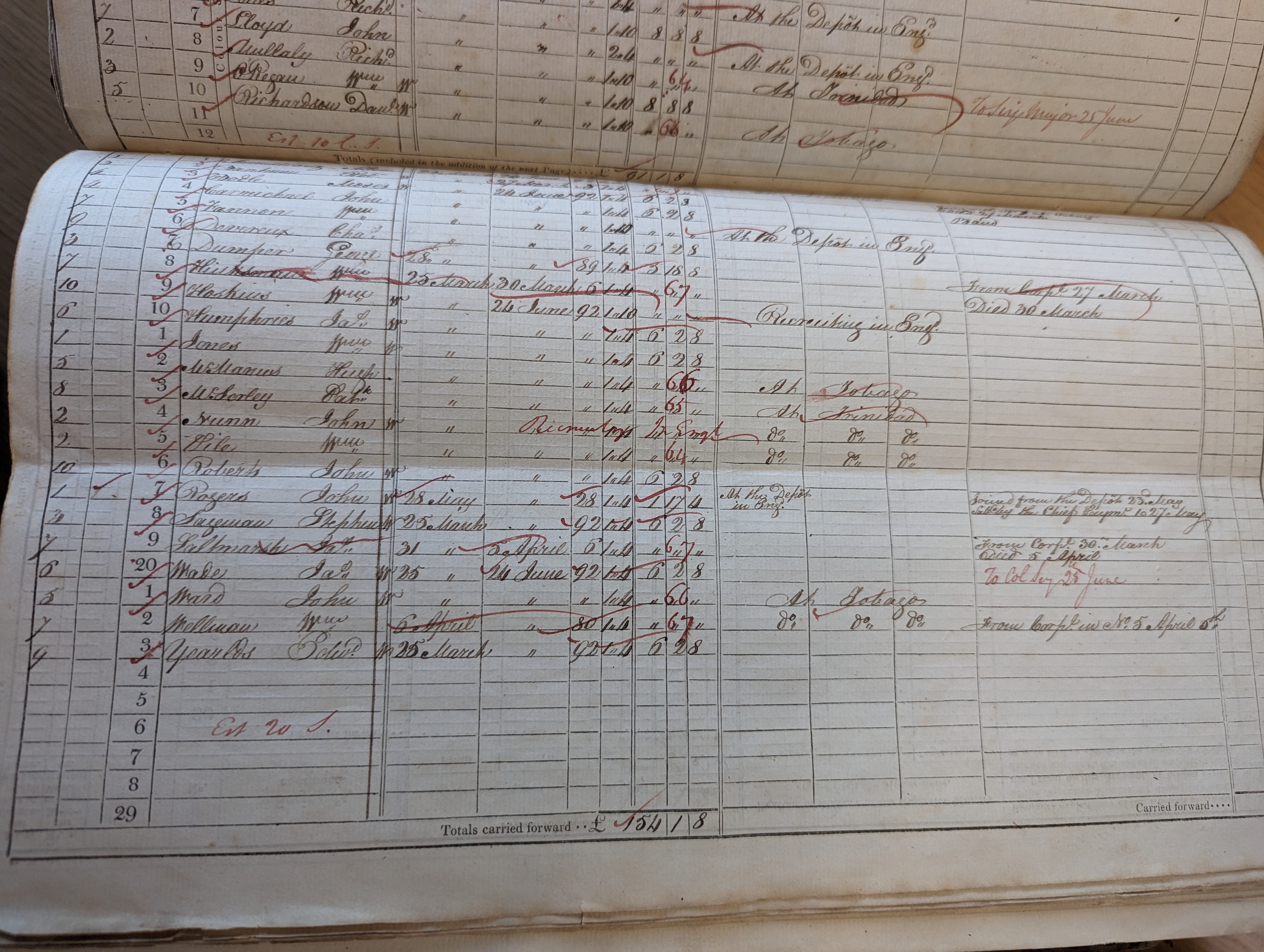 Cited from General Muster Books and Pay Lists, WO 12/2209, 4th Foot 1st Battalion, 1820-1822 (Commissary General of Musters Office and successors)