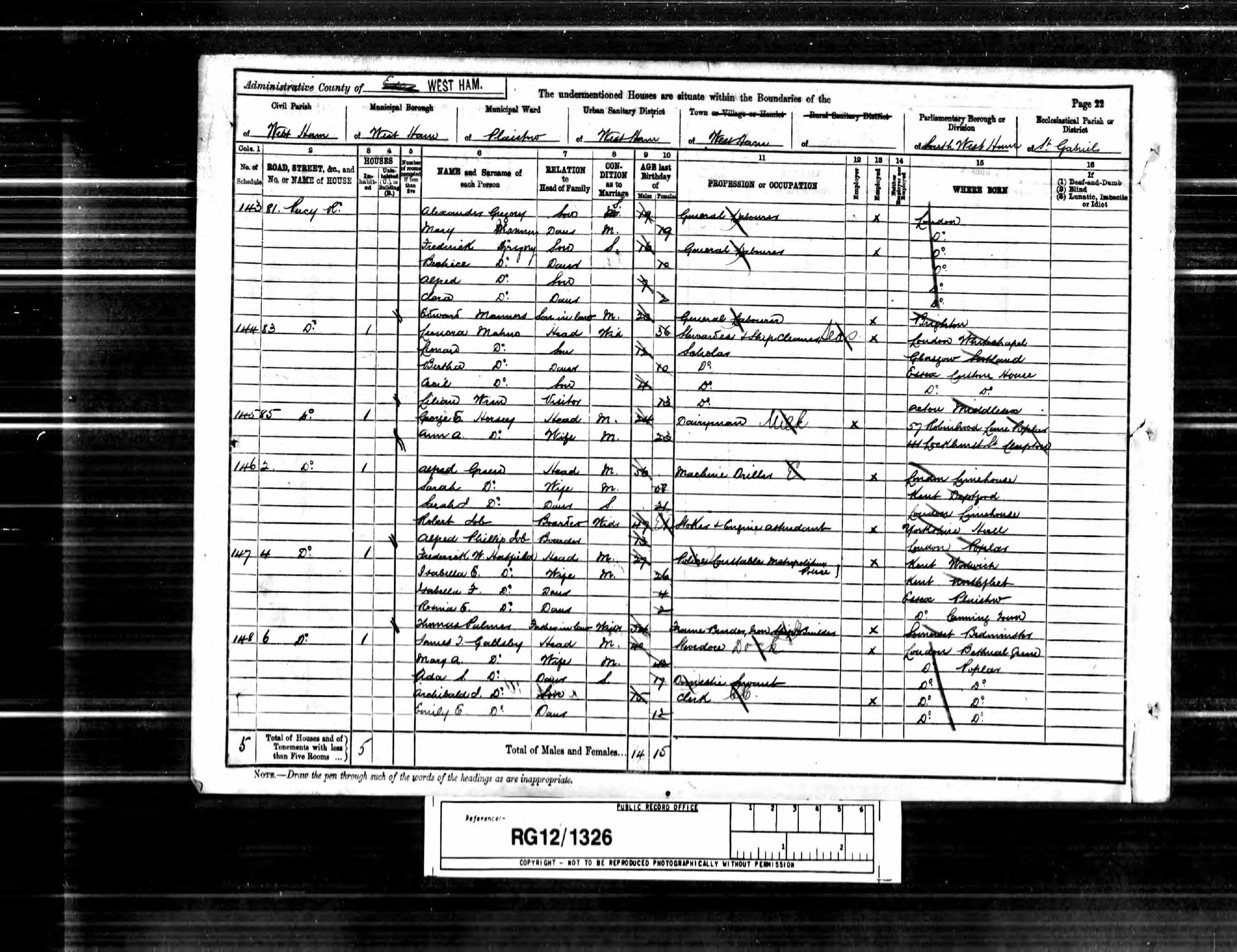 1891 England and Wales Census; Class RG12, Piece 1326, Folio 117, Page 22, Schedule 146.