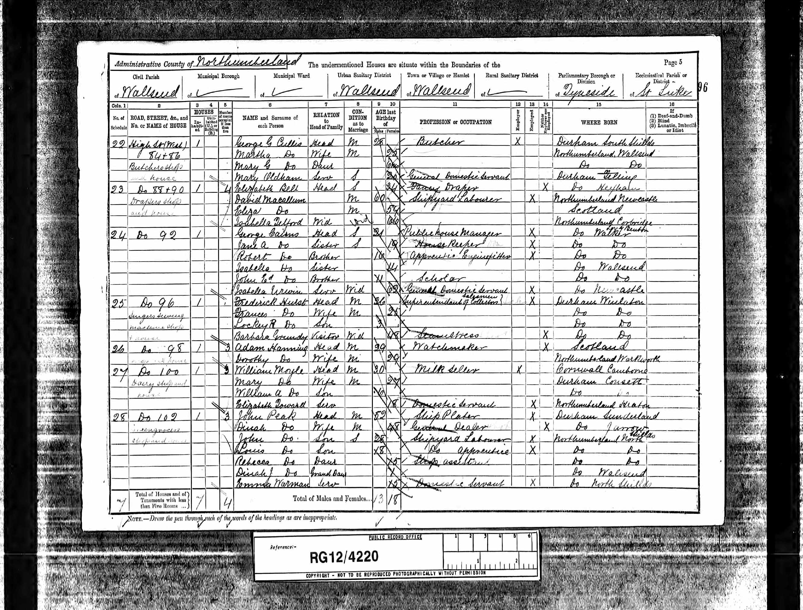 - was recorded in the census on 5 Apr, 1891 at 102 High Street, Wallsend, Northumberland, England