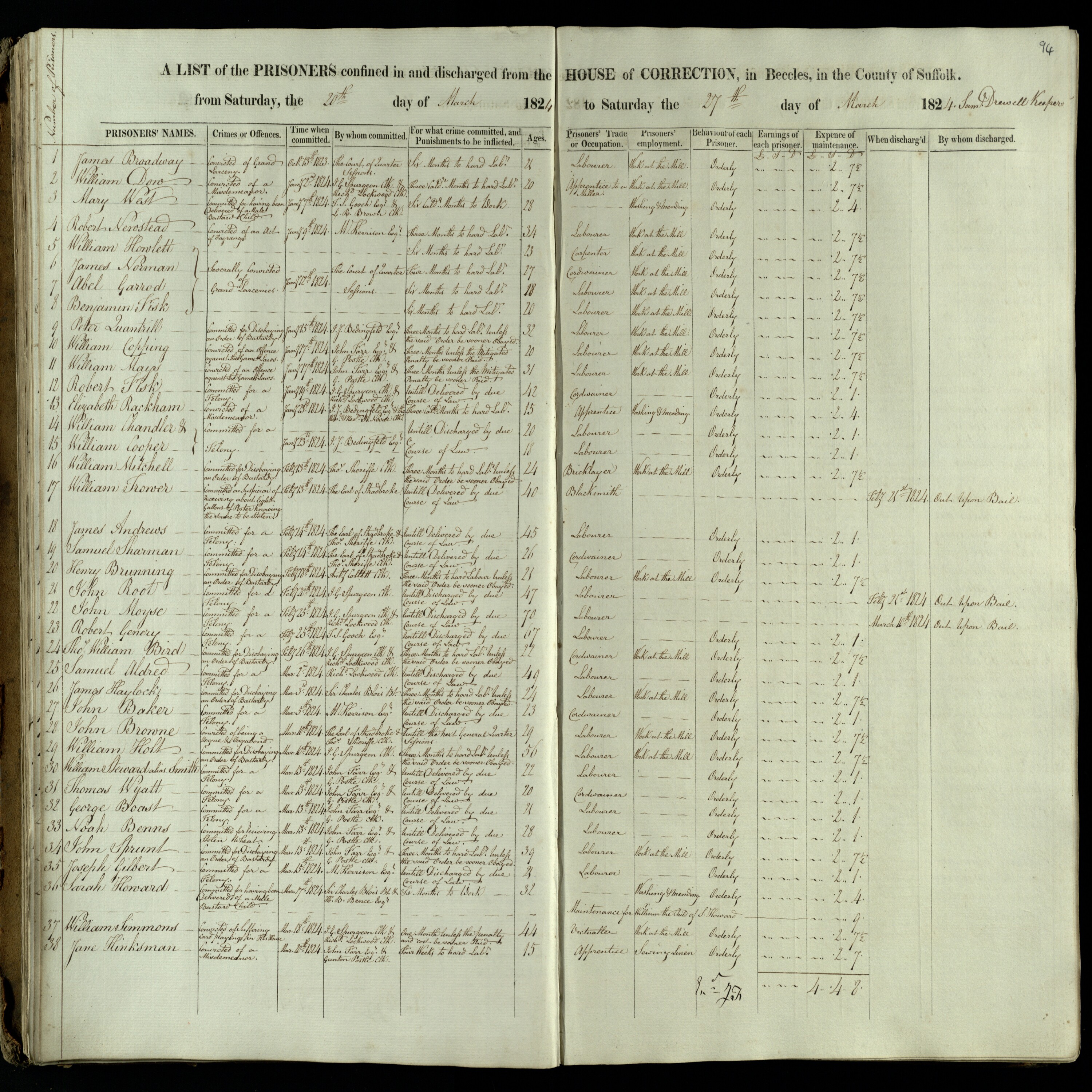 Beccles House of Correction: Lists of Prisoners (1791-1848)
