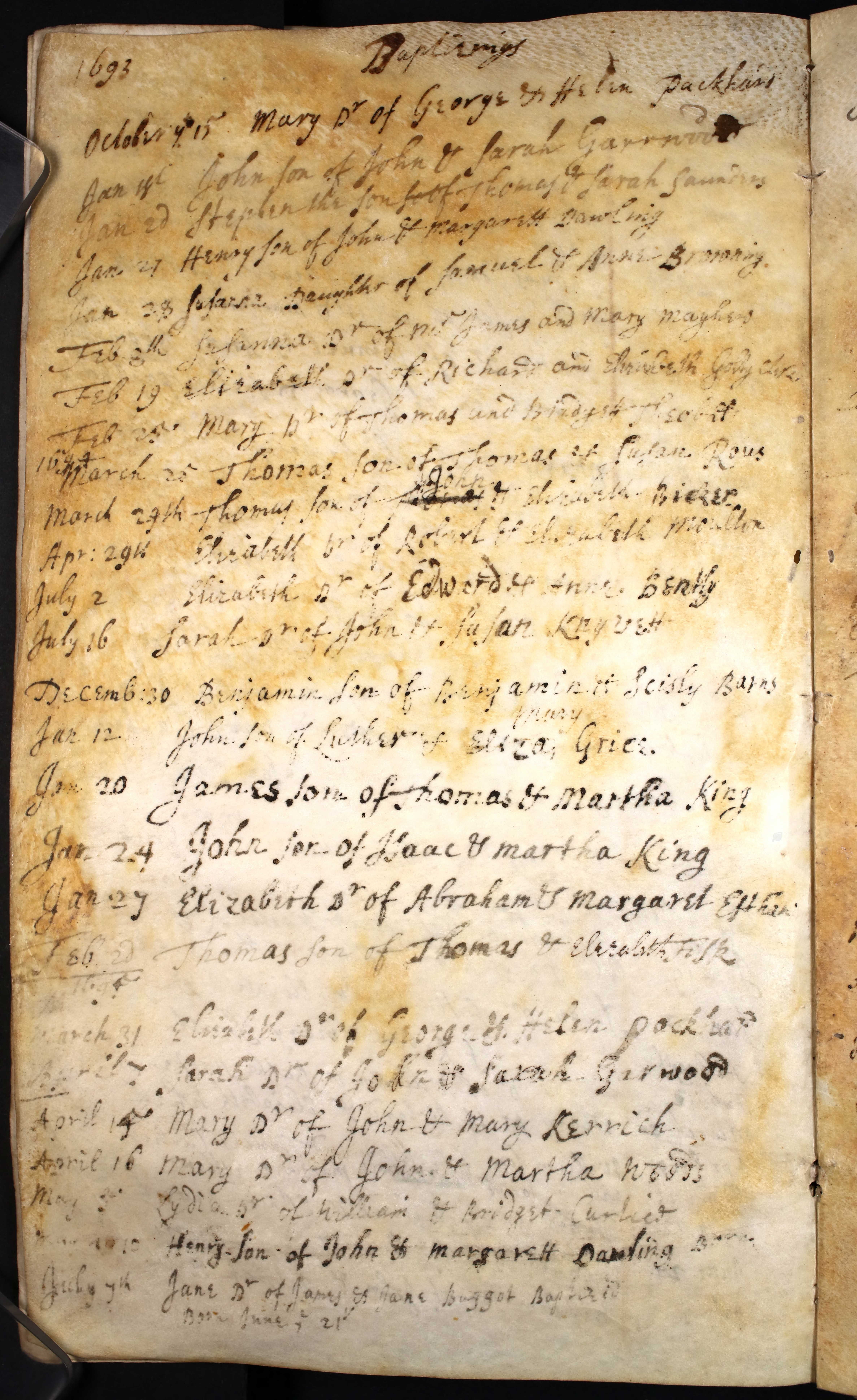 Baptism entry for Thomas Rous, 25 Mar 1694