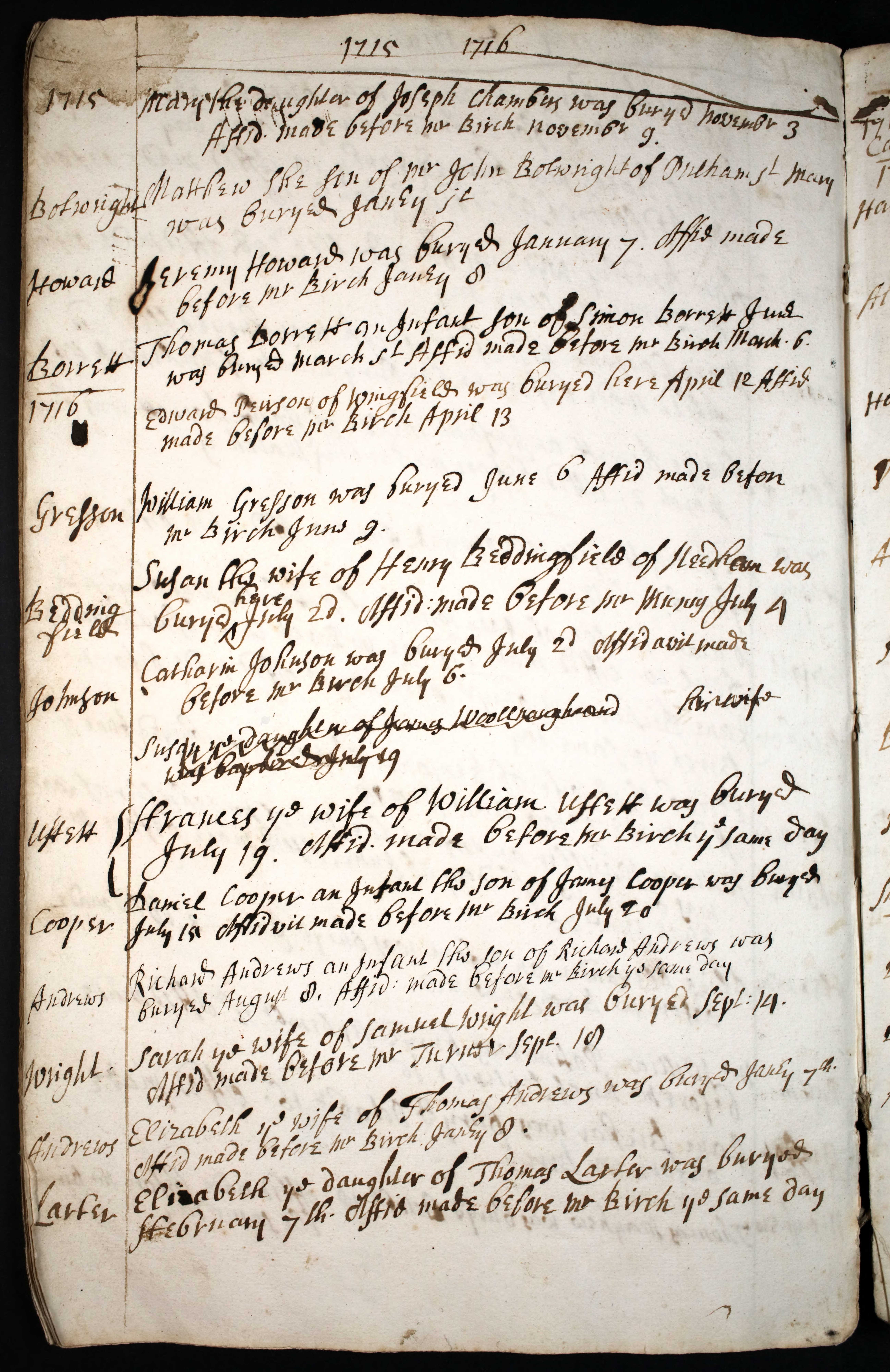 Burial entry for Mary Chambers, 3 Nov 1715