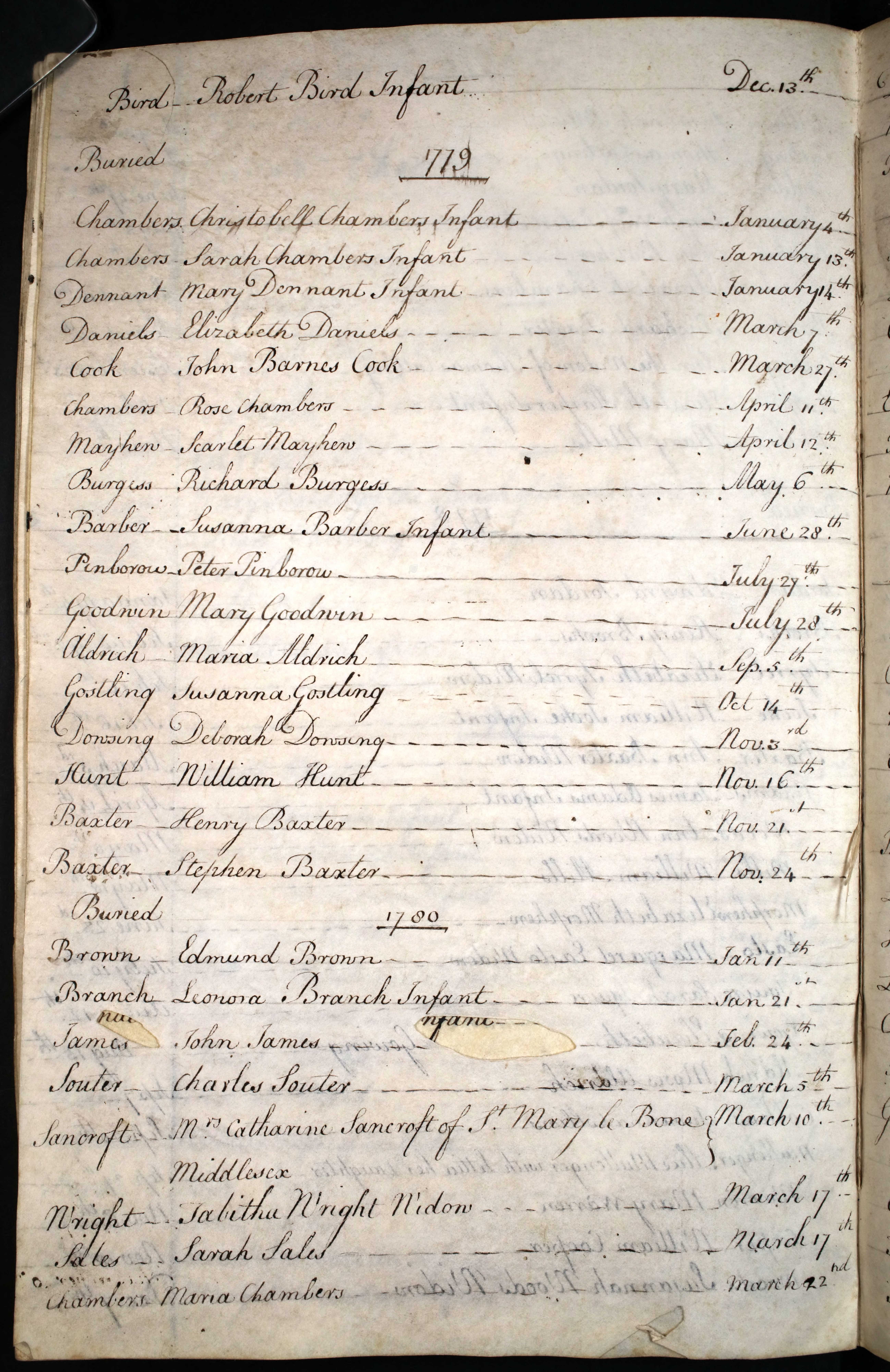 Burial entry for Rose Chambers, 11 Apr 1779