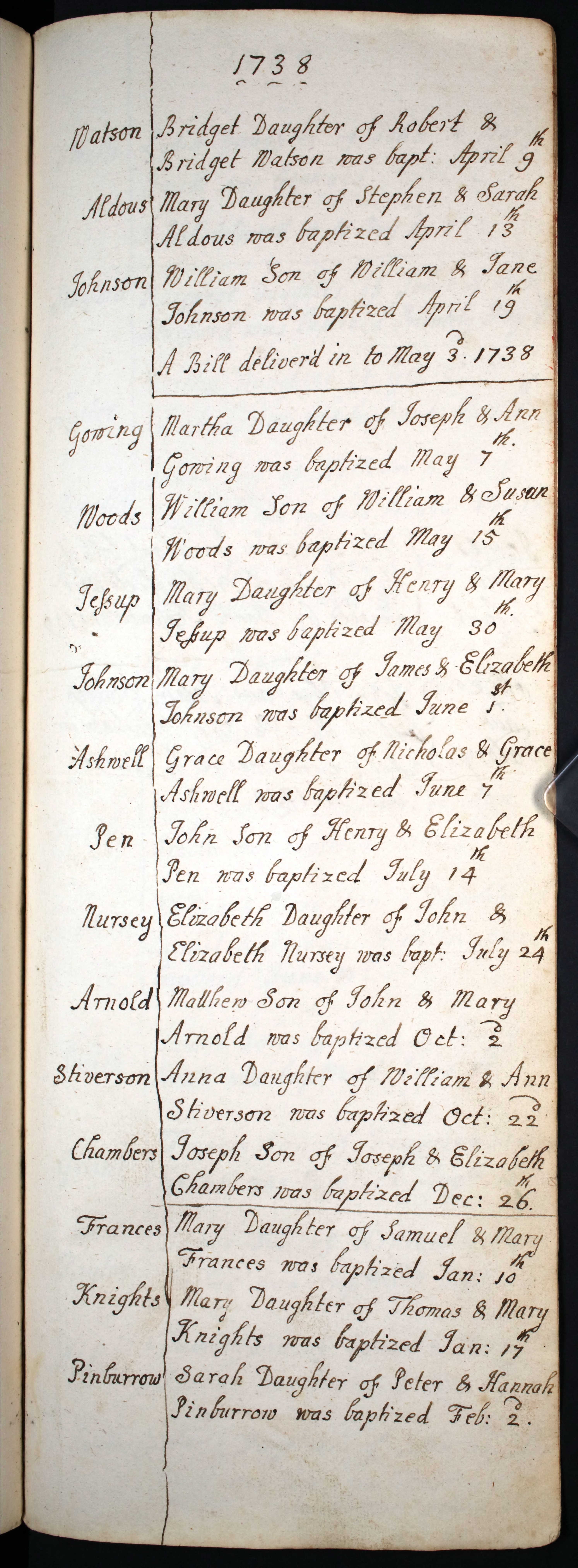 Baptism entry for Joseph Chambers, 26 Dec 1738