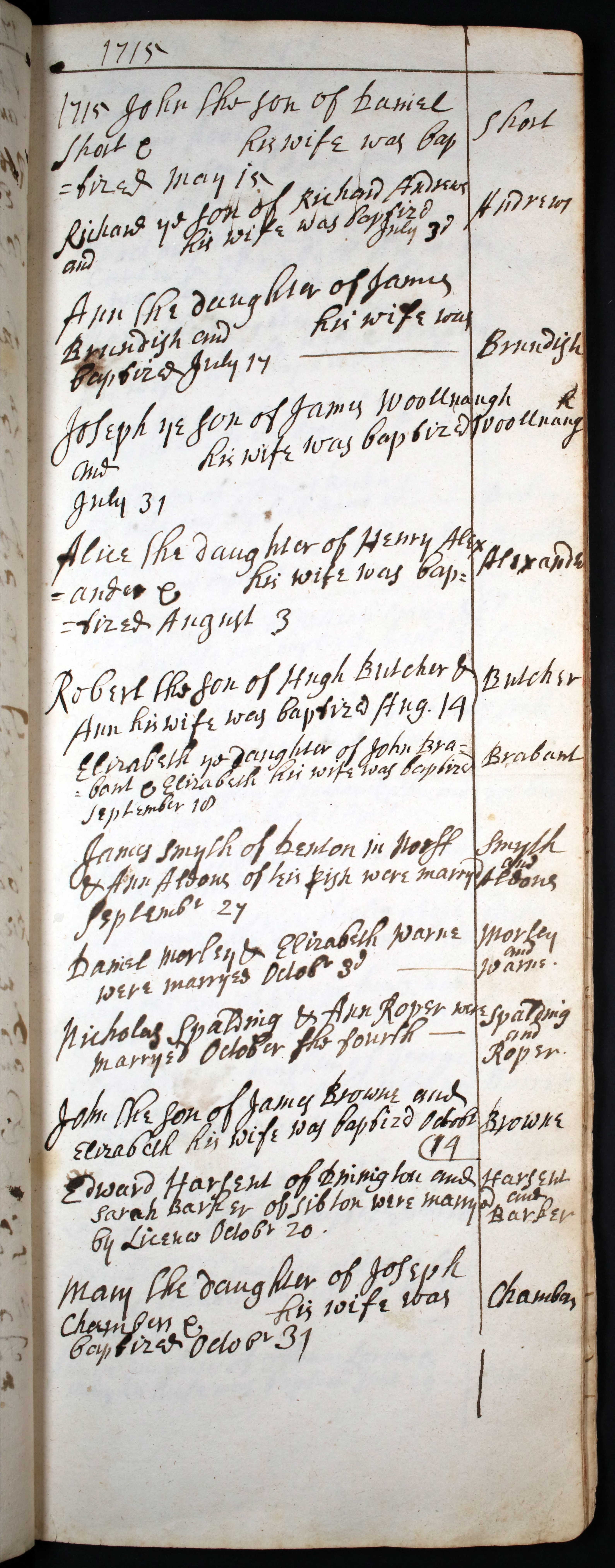 Baptism entry for Mary Chambers, 31 Oct 1715