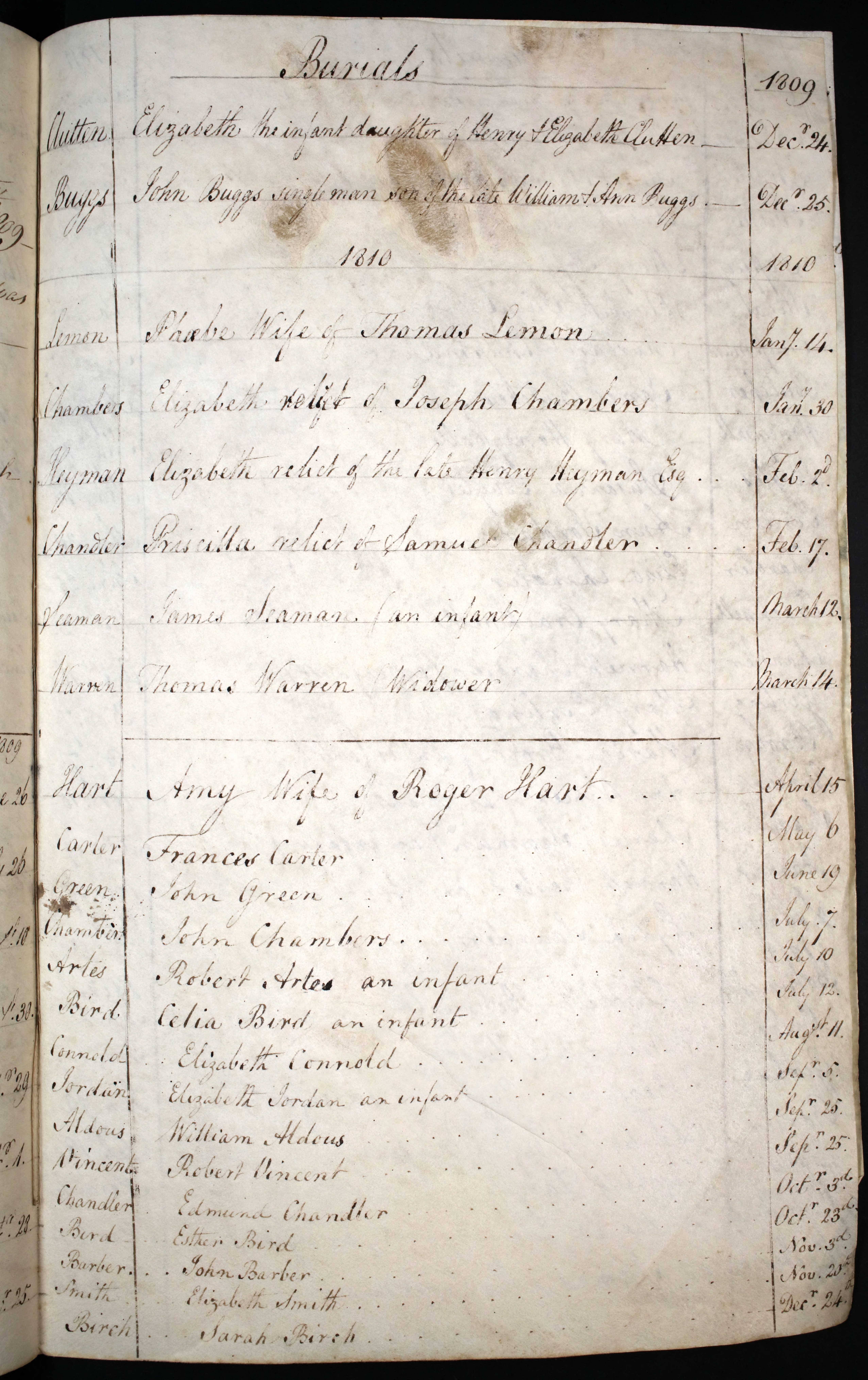 Burial entry for Elizabeth Chambers, 30 Jan 1810