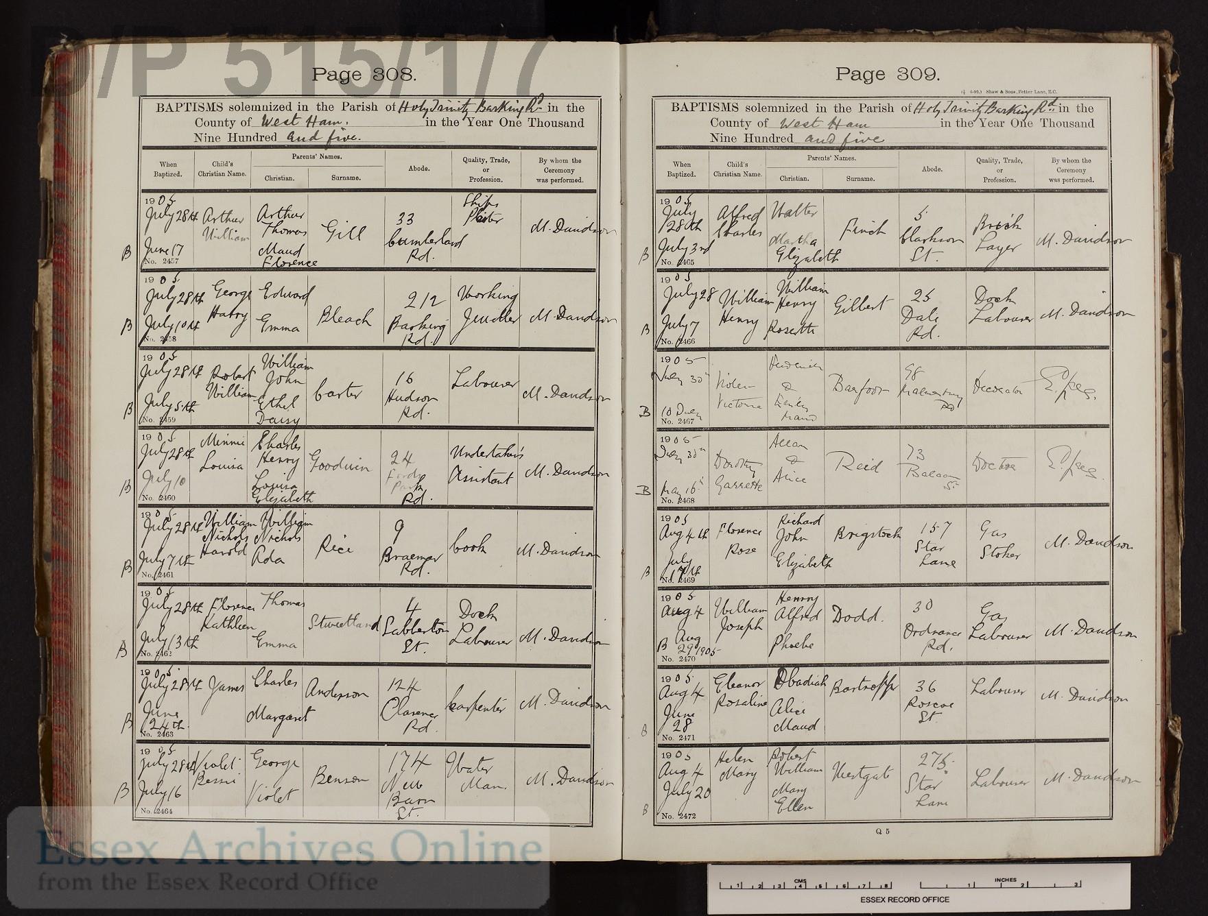 Cited from Parish Registers of Holy Trinity, Canning Town, Essex (Church of England)
