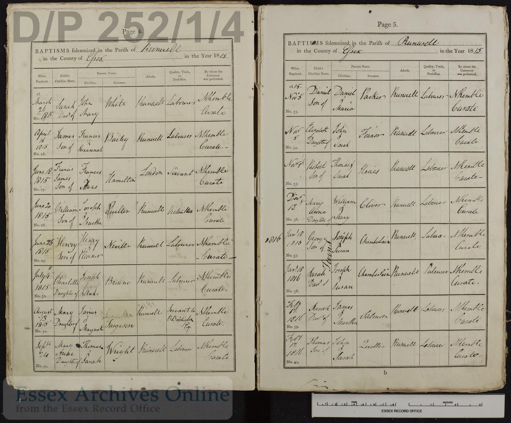 Cited from Parish Registers of St. Mary, Runwell, Essex, England (Church of England)