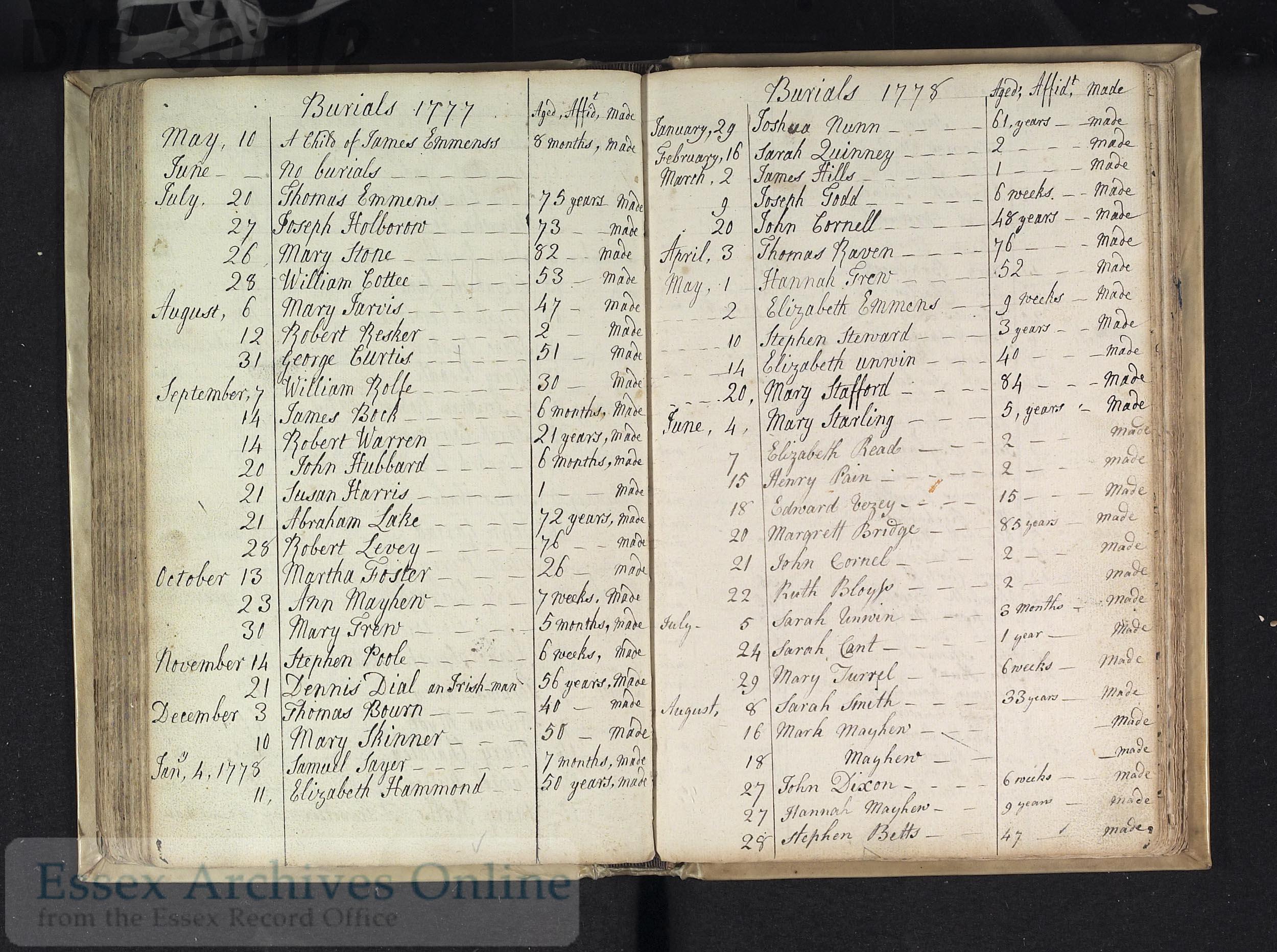 Parish Registers of St. Nicholas, Witham, Essex, England; Burial entry for George Curtis, 31 Aug 1777.