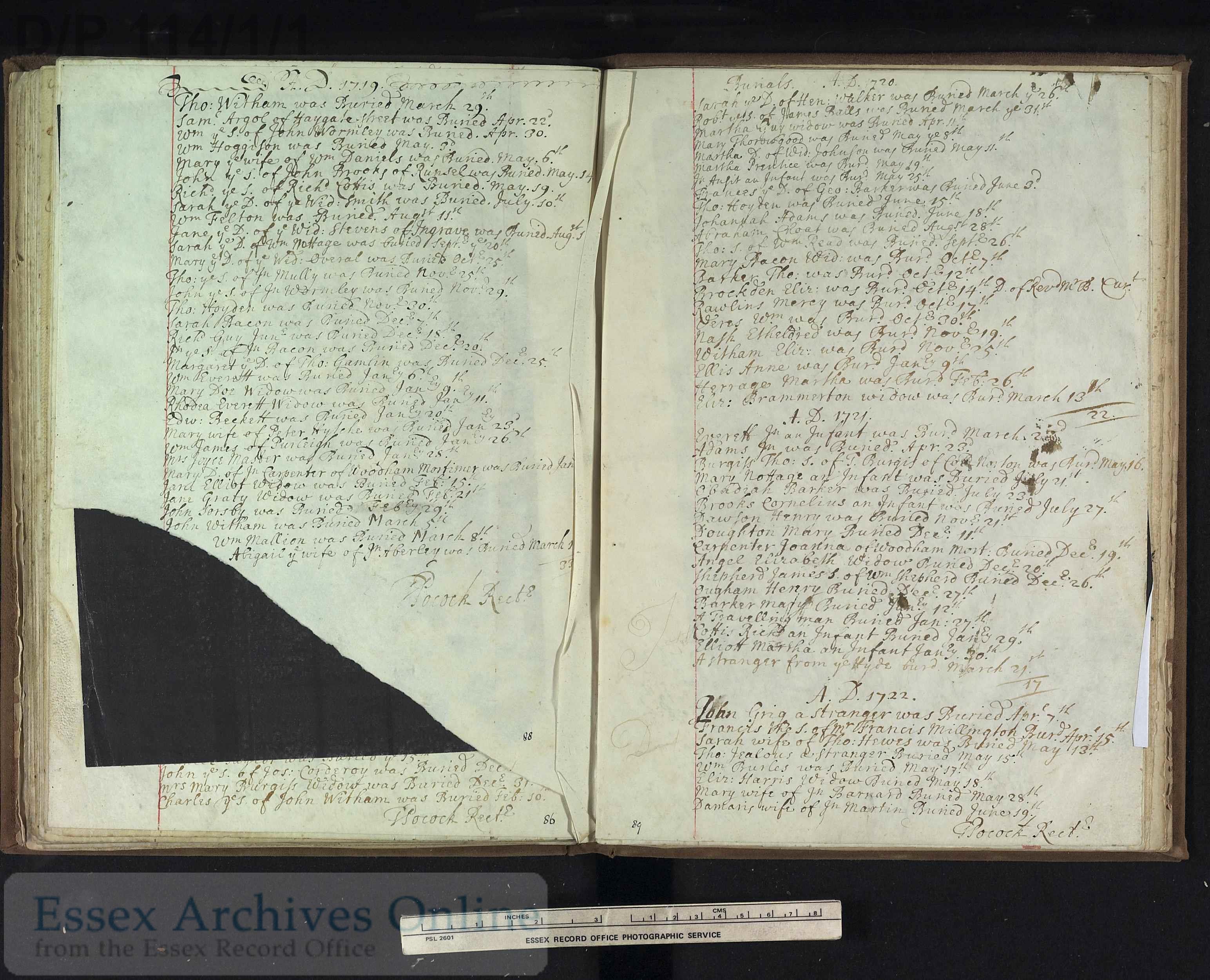 Parish Registers of St. John the Baptist, Danbury, Essex, England; Burial entry for Wm Felton, 11 Aug 1719.