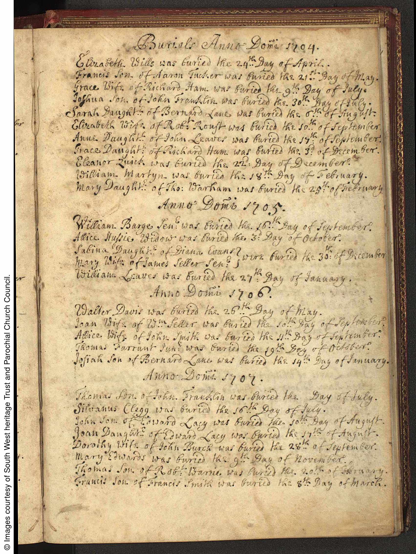 Parish Registers of St Michael, Shute, Devon; Burial entry for Thomas Farrant, 19 Oct 1706.