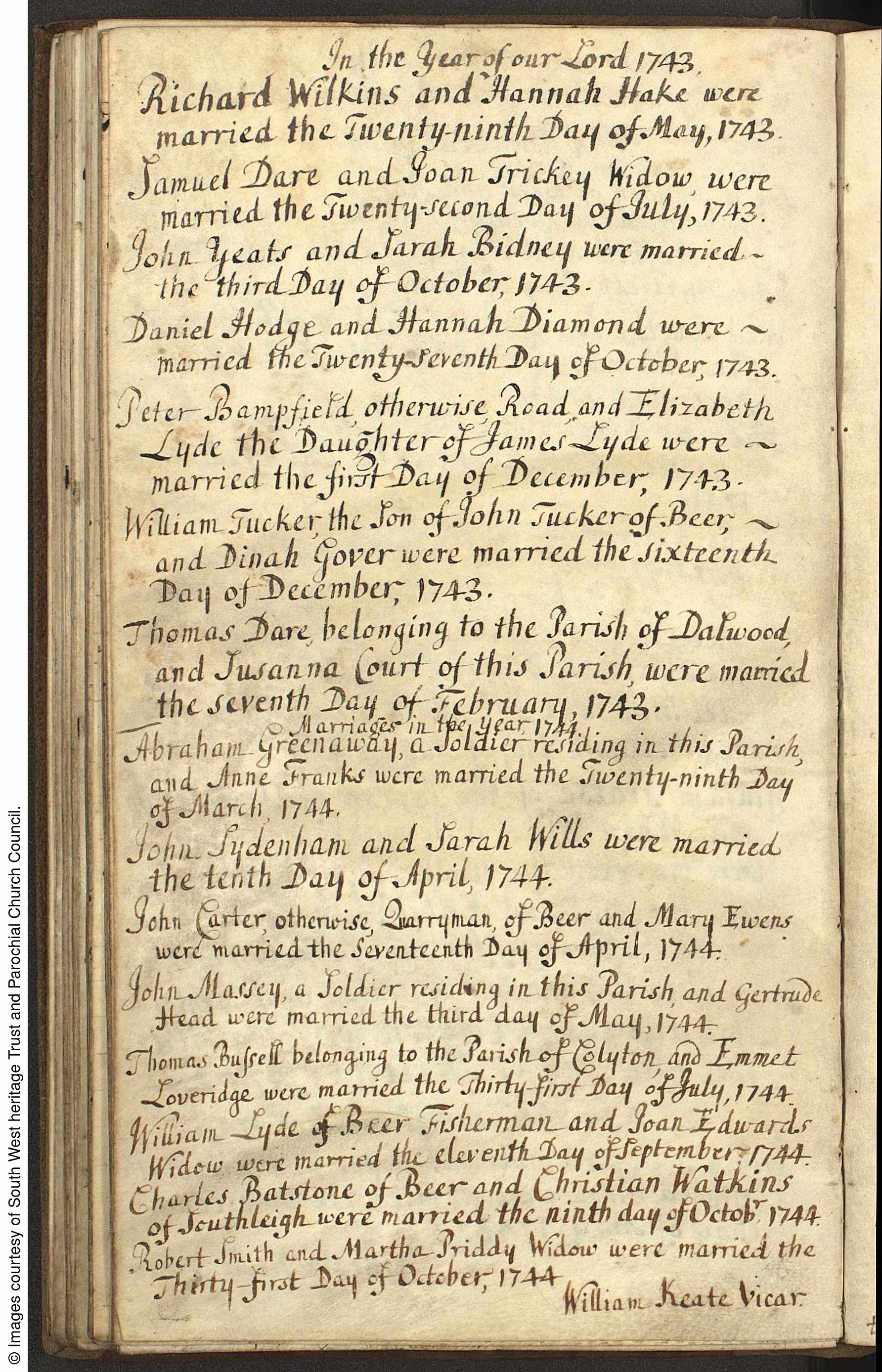 MarriageOfSamuelDareAndJoanTrickey1743Seaton