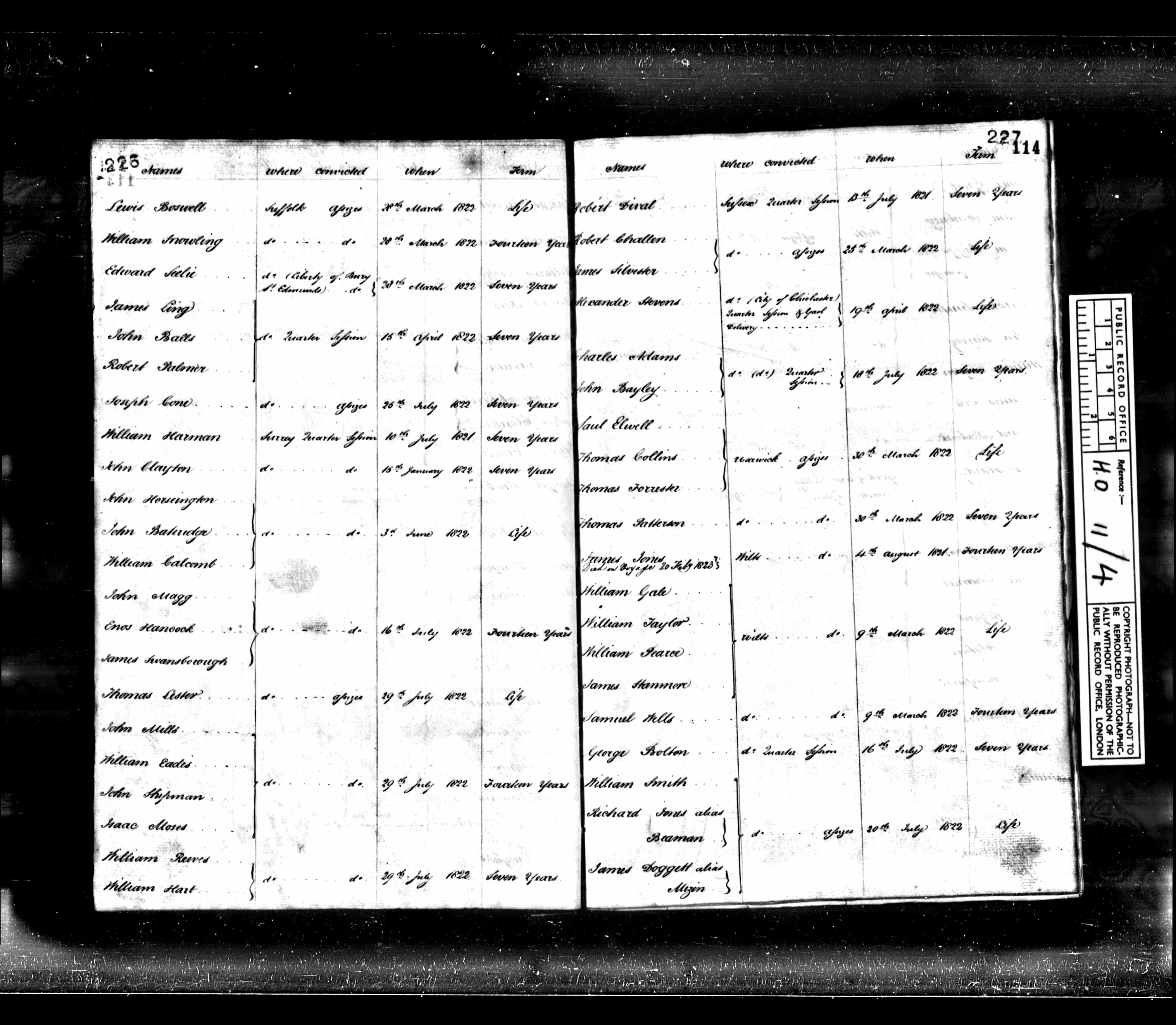 Name: William Snowling Where convicted: Suffolk assizes When: 28 March 1822 Term: Fourteen years