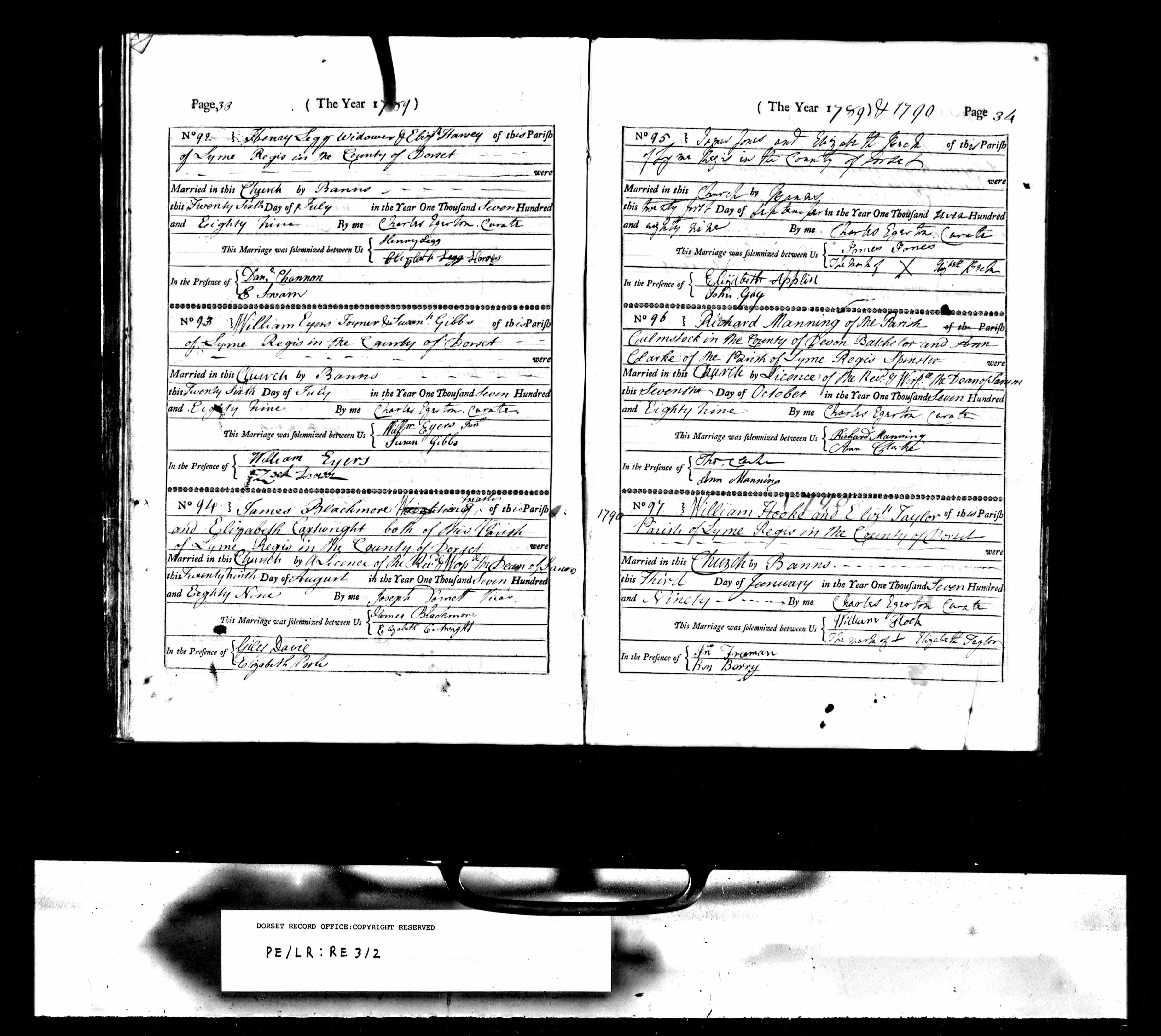 MarriageOfWilliamEyersAndSusannahGibbs1789LymeRegis