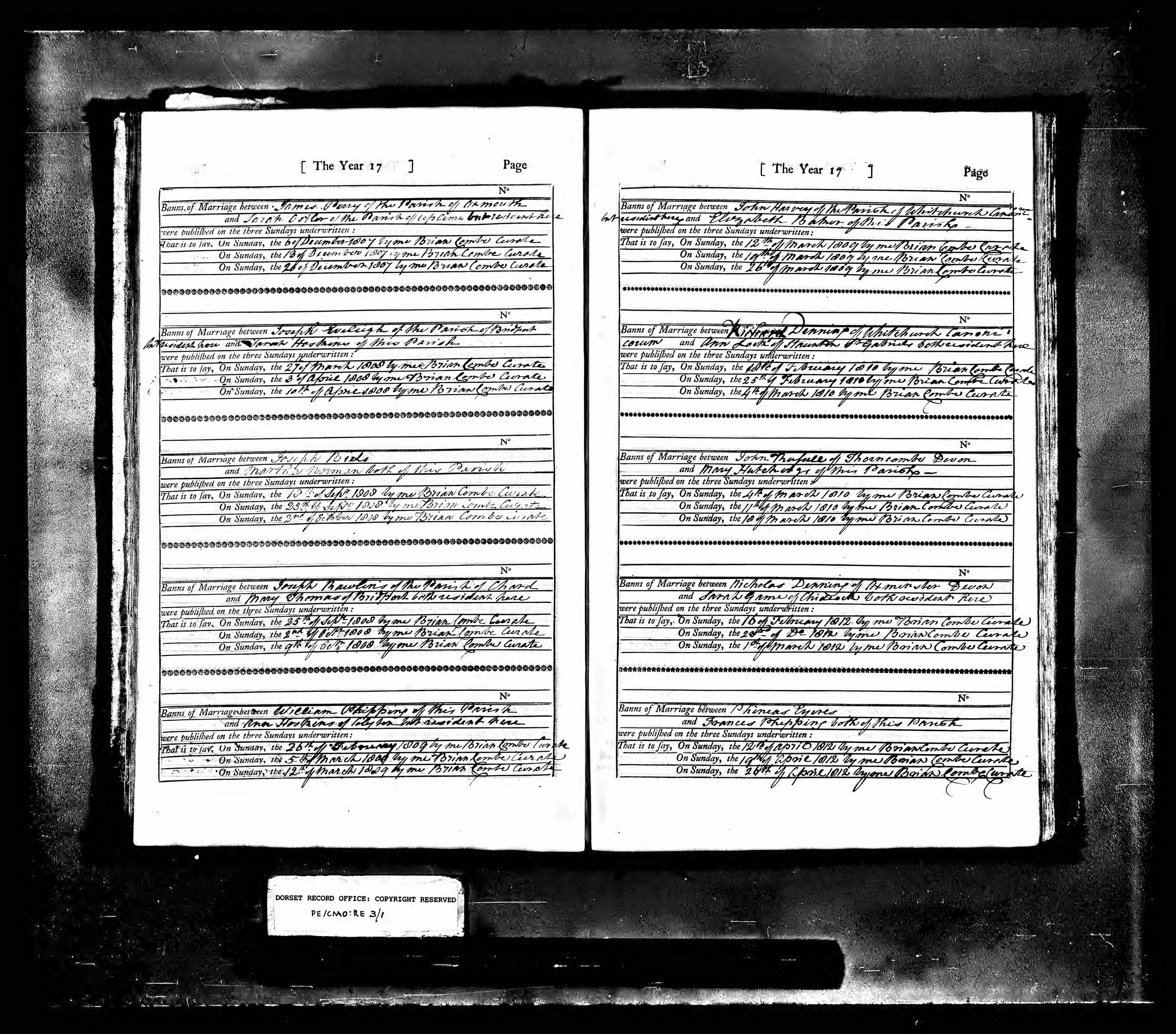 - Phineas Eyers★ and Frances Phippen★ marriage banns were read on 26 Apr, 1812 in Charmouth, Dorset, England