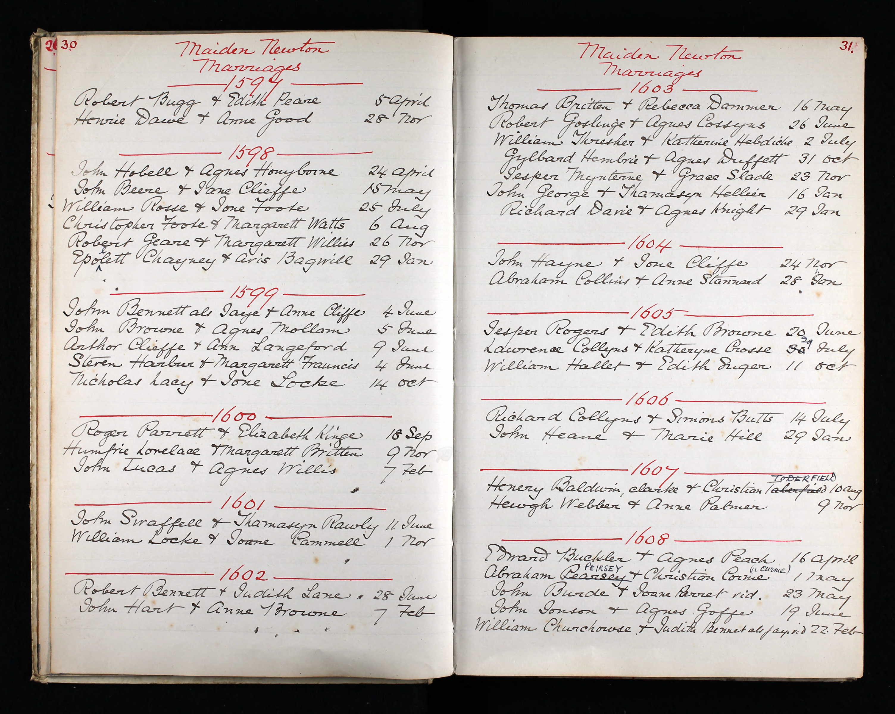 - Humphrey Lovelace★ and Margaret Britton★ was married on 9 Nov, 1600 at St. Mary's Church, Maiden Newton, Dorset, England