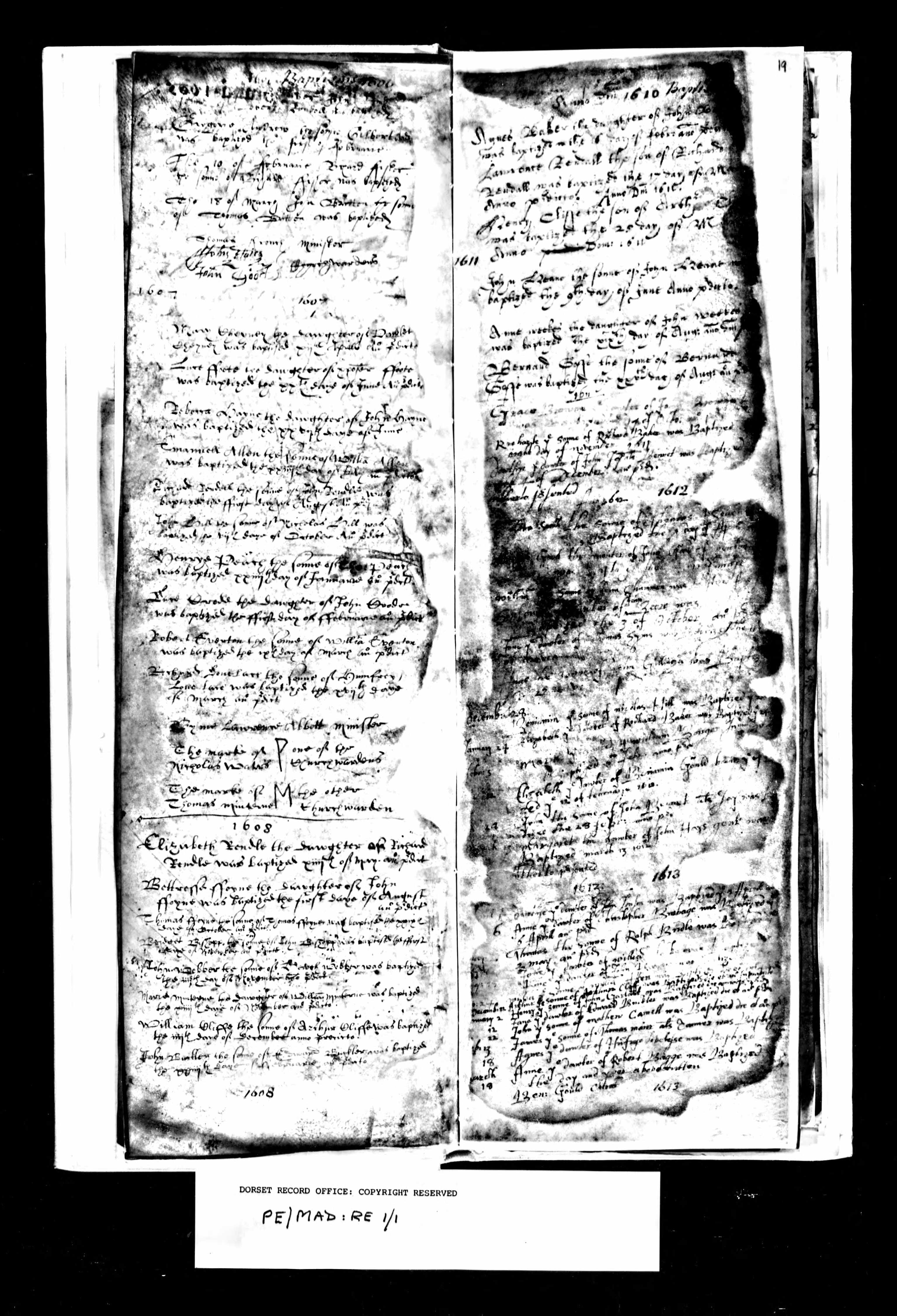 Cited from Parish Registers of St. Mary, Maiden Newton, Dorset (Church of England)