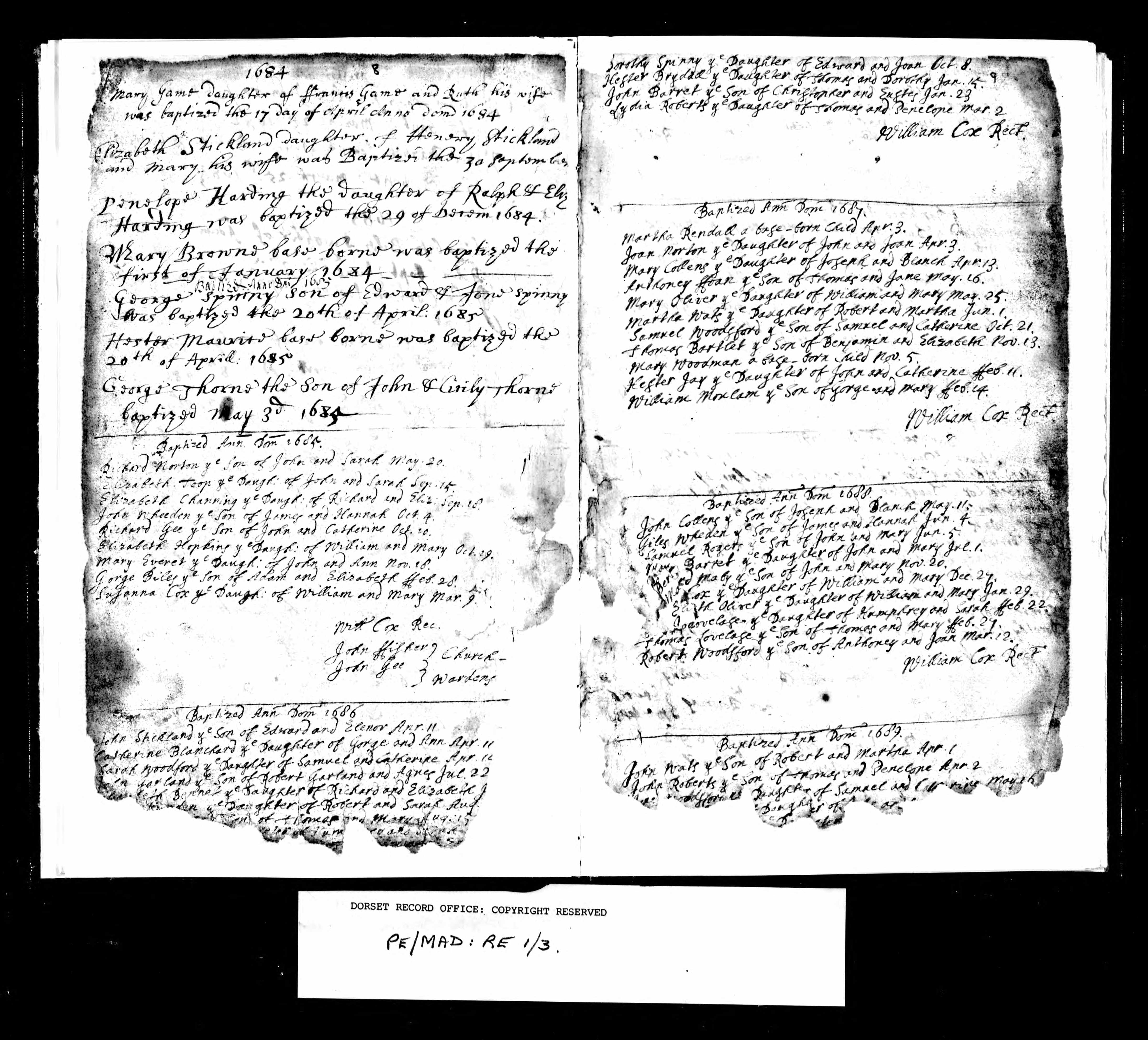 Cited from Parish Registers of St. Mary, Maiden Newton, Dorset (Church of England)