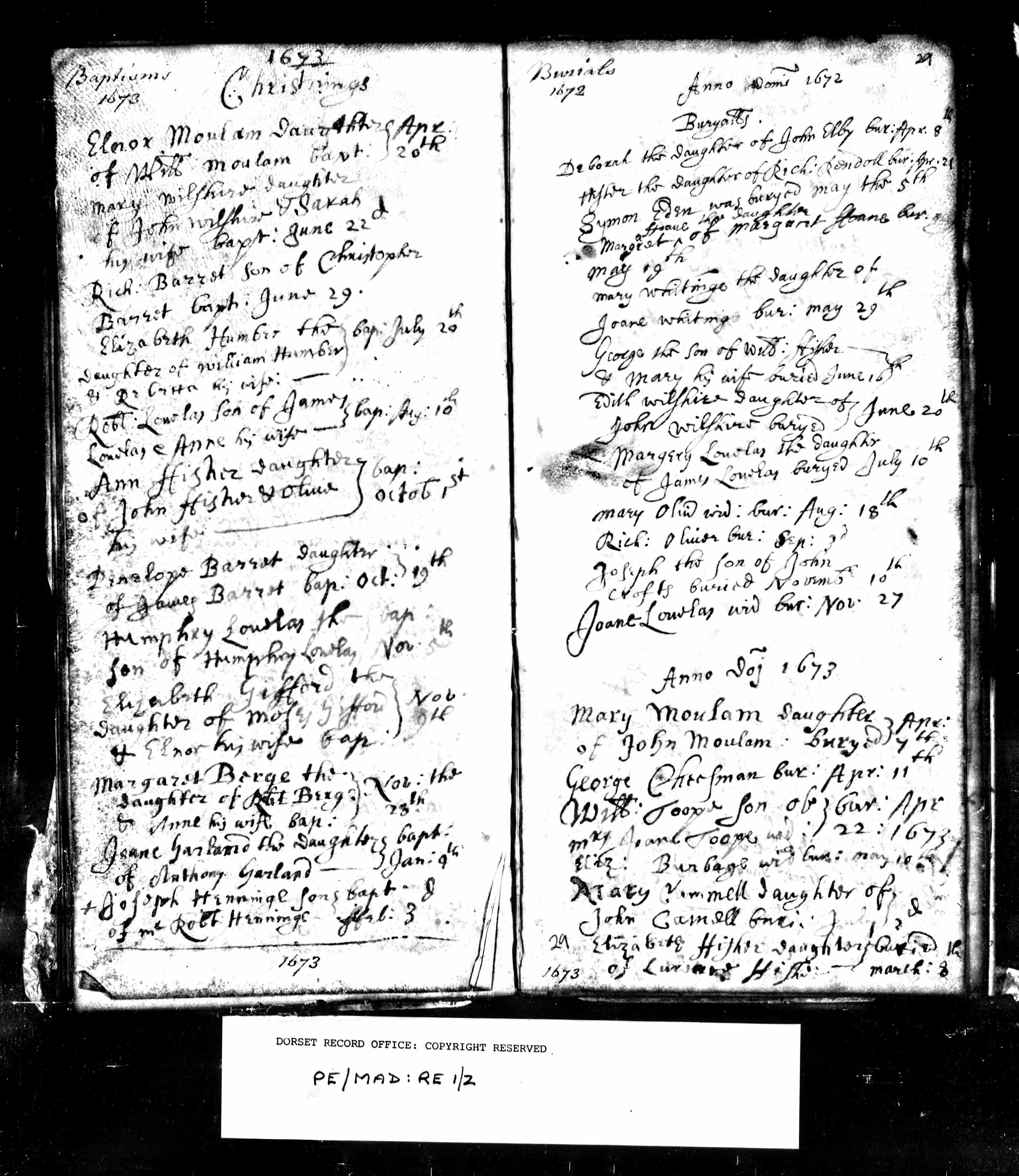 Cited from Parish Registers of St. Mary, Maiden Newton, Dorset (Church of England)