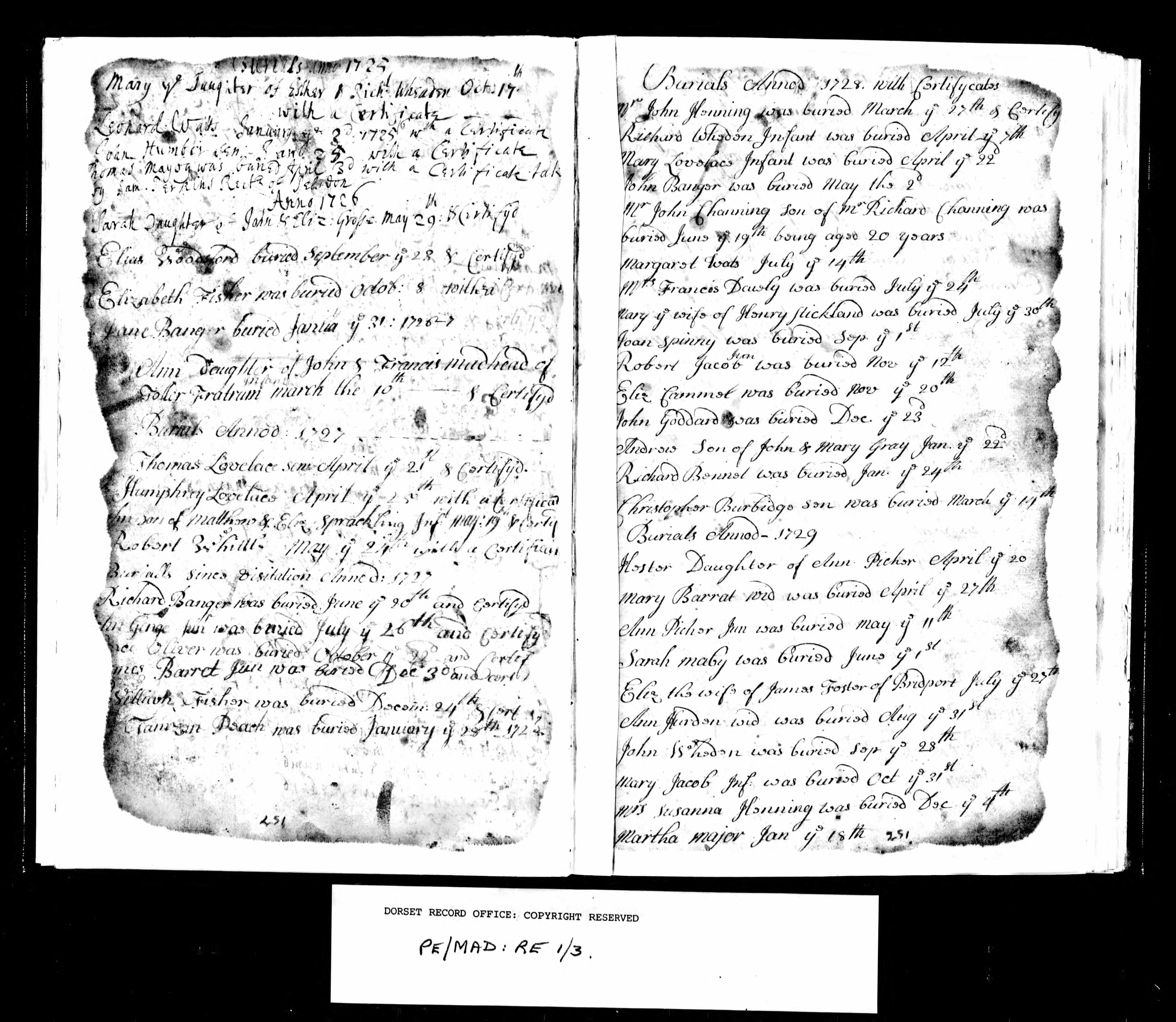Cited from Parish Registers of St. Mary, Maiden Newton, Dorset (Church of England)
