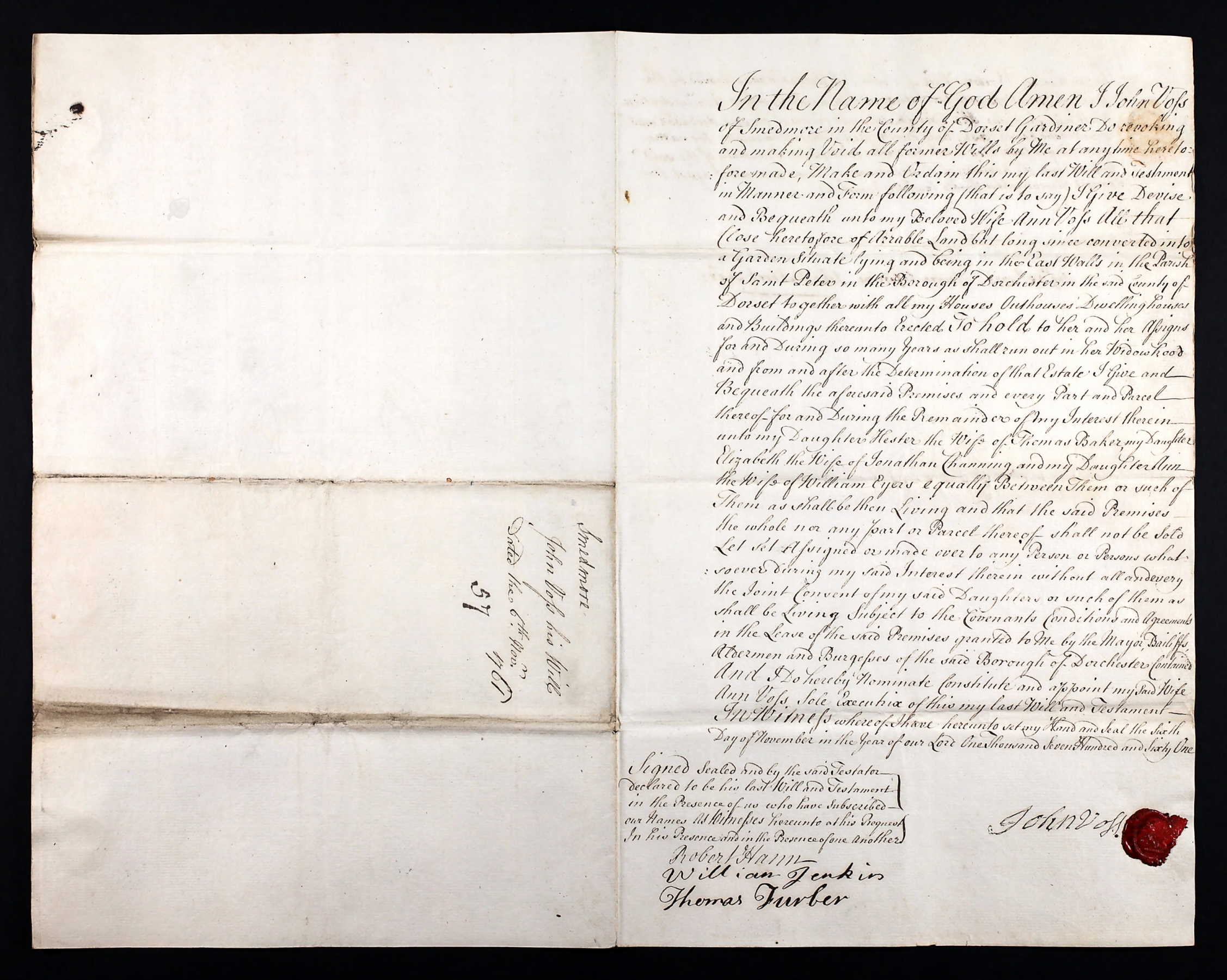 WillOfJohnVossOfSmedmoreDorset1761