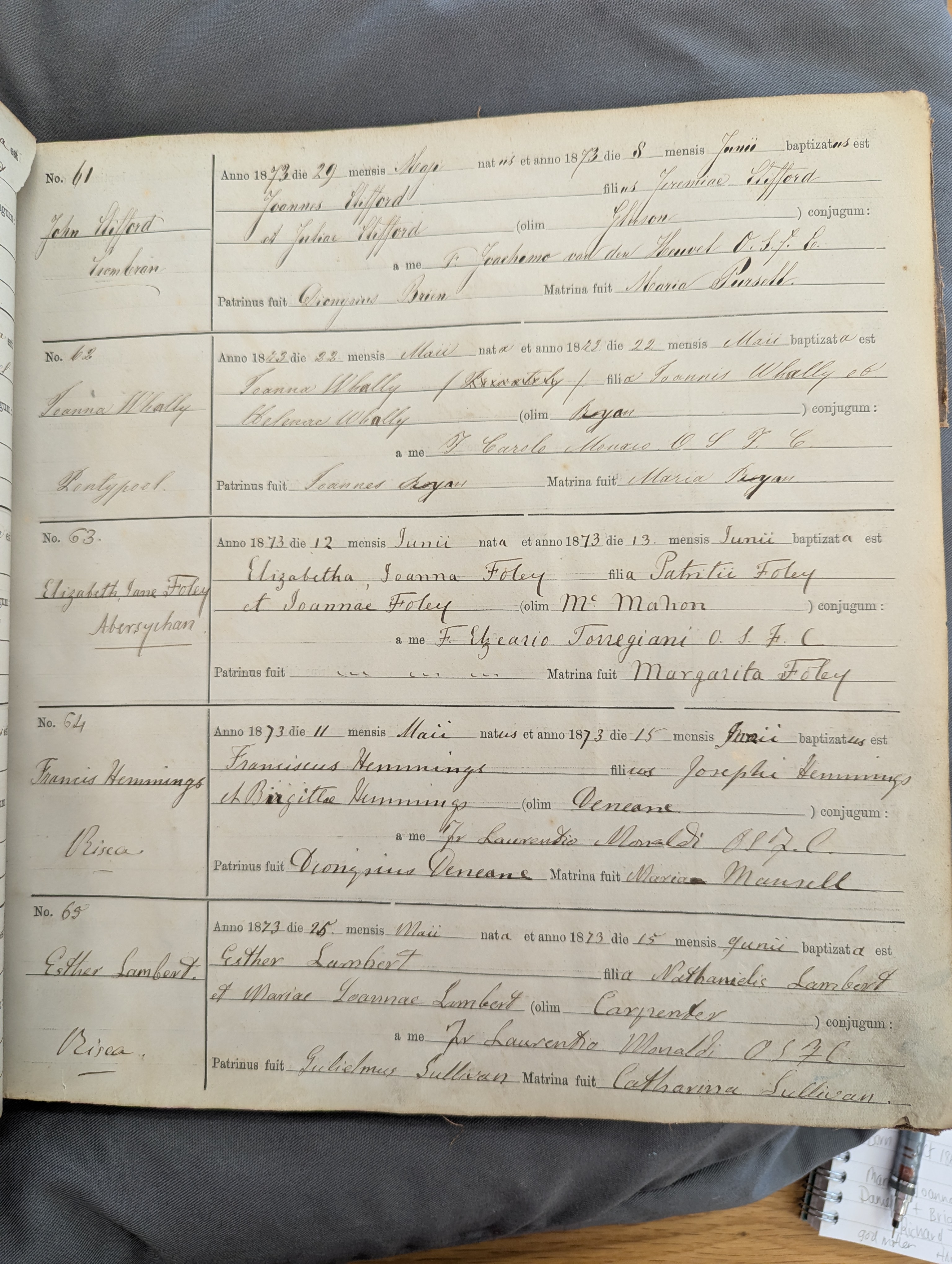Francis Hemmings son of Joseph & Bridget Hemmings (formerly Deneane). Godfather Dennis Denean. Godmother Maria Mansell.