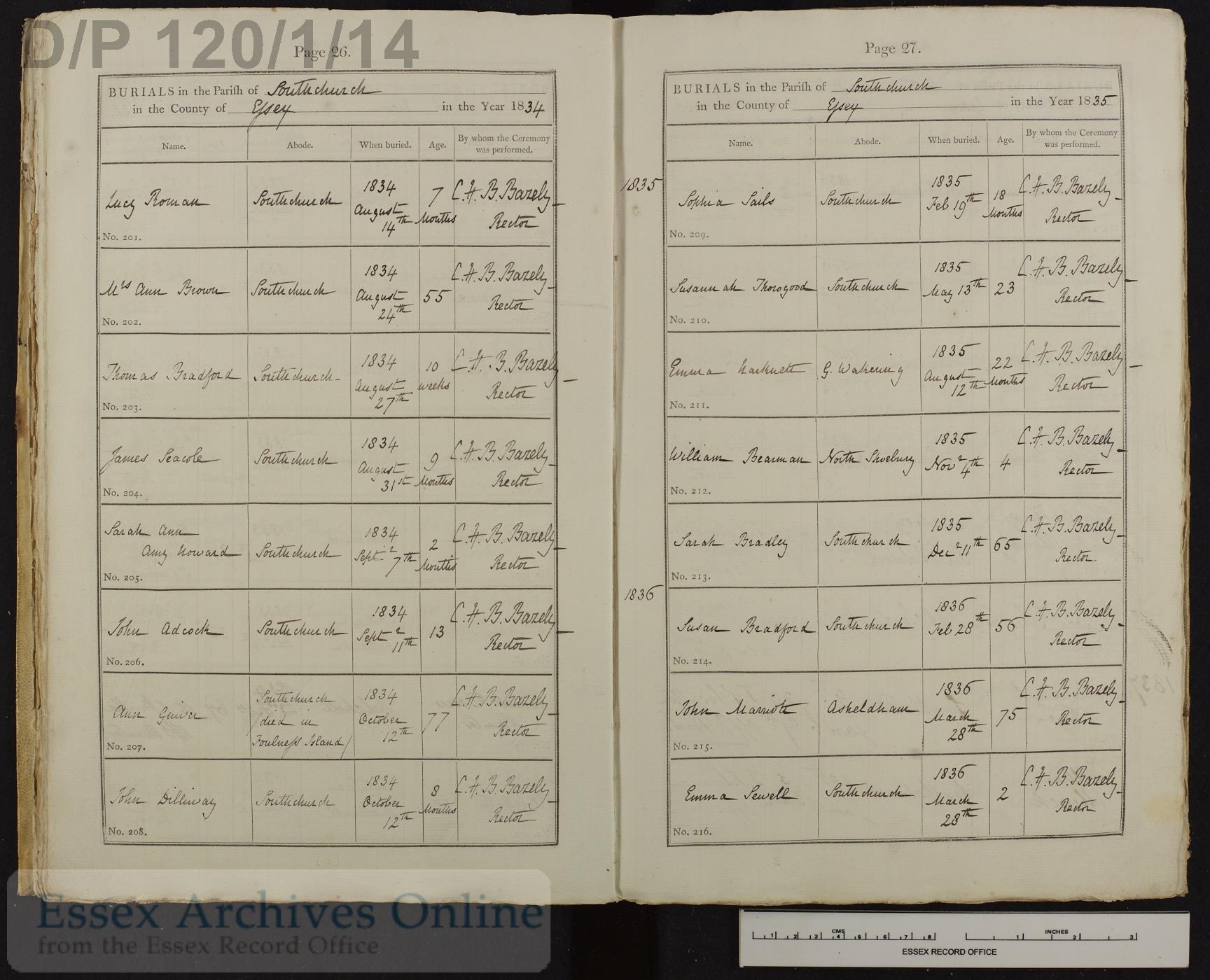 Cited from Parish Registers of Holy Trinity, Southchurch, Essex (Church of England)
