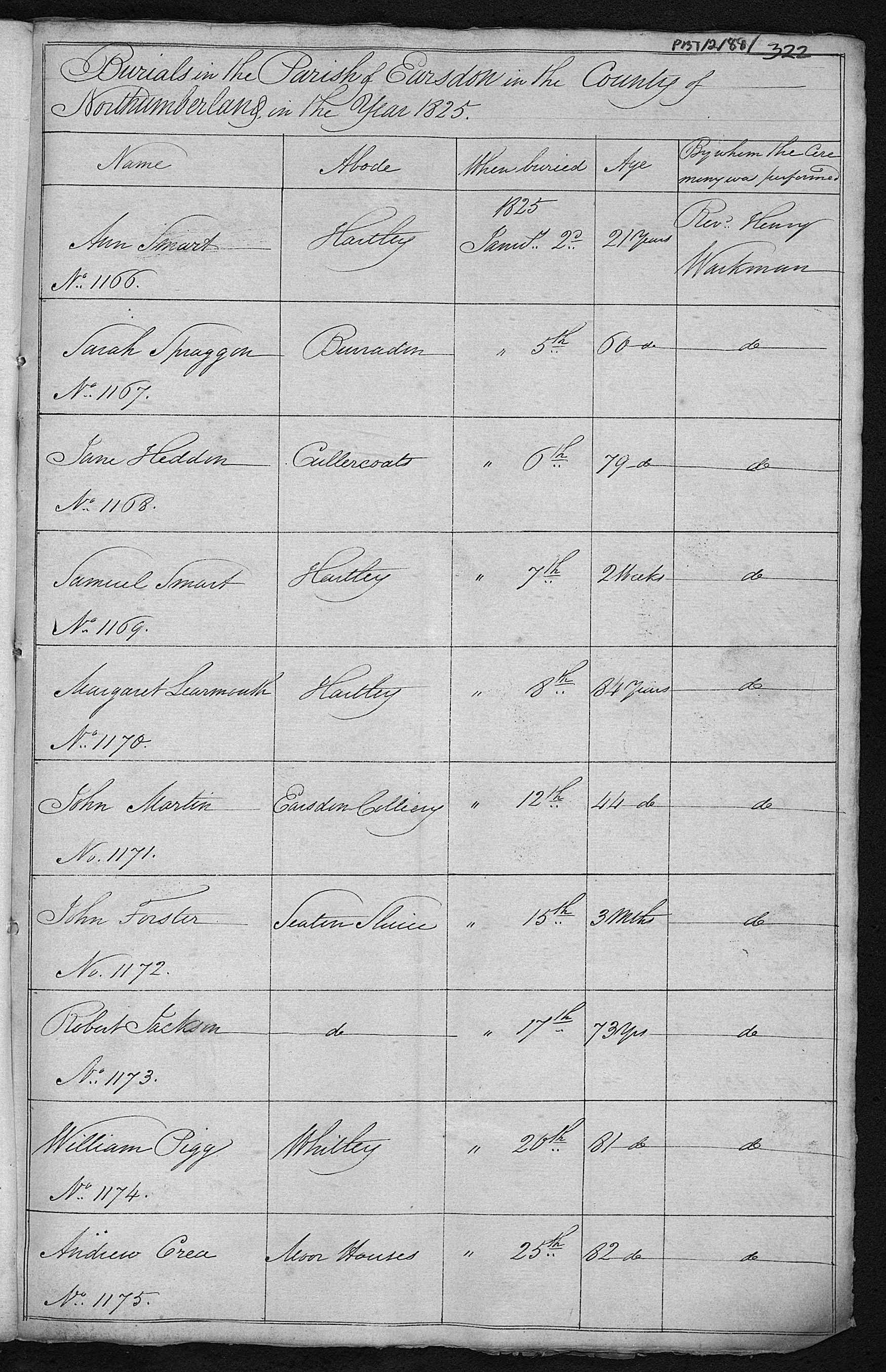 - Margaret Steenson★ was buried on 8 Jan, 1825 at St. Alban's Church, Earsdon, Northumberland, England