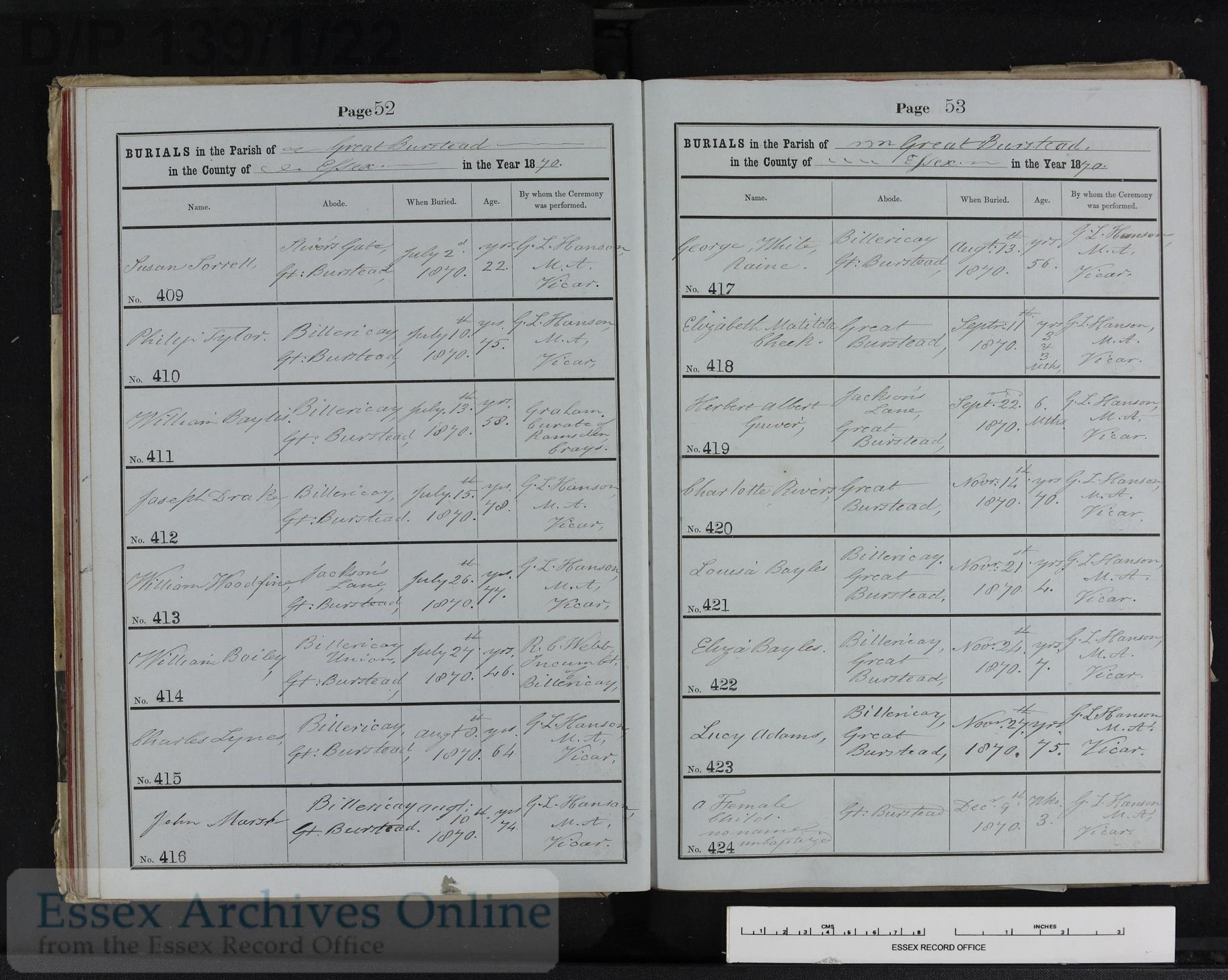 Cited from Parish Registers of St. Mary Magdalene, Great Burstead, Essex (Church of England)