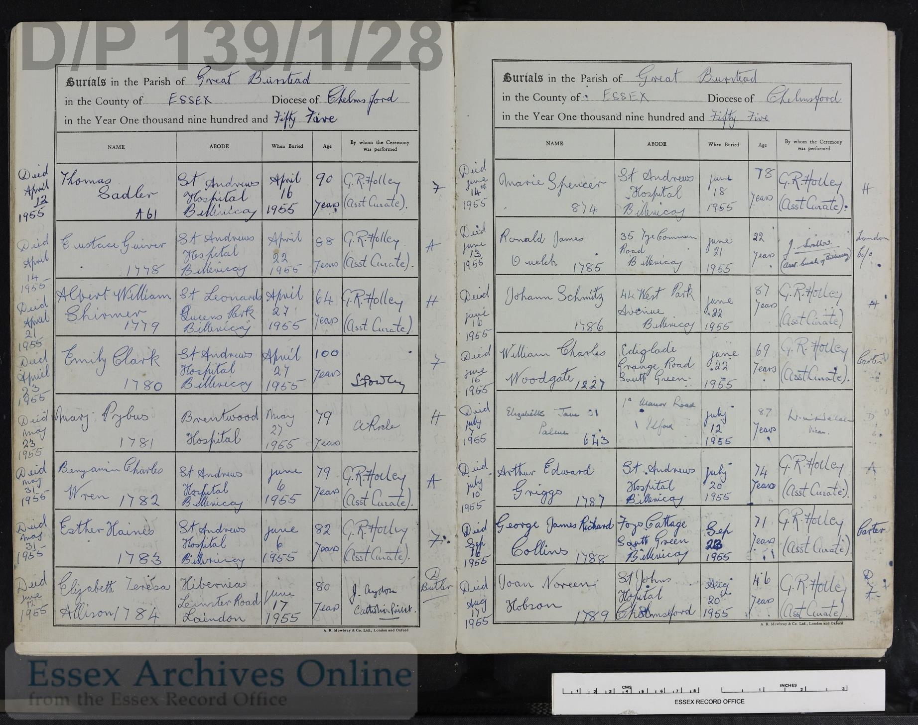 Cited from Parish Registers of St. Mary Magdalene, Great Burstead, Essex (Church of England)