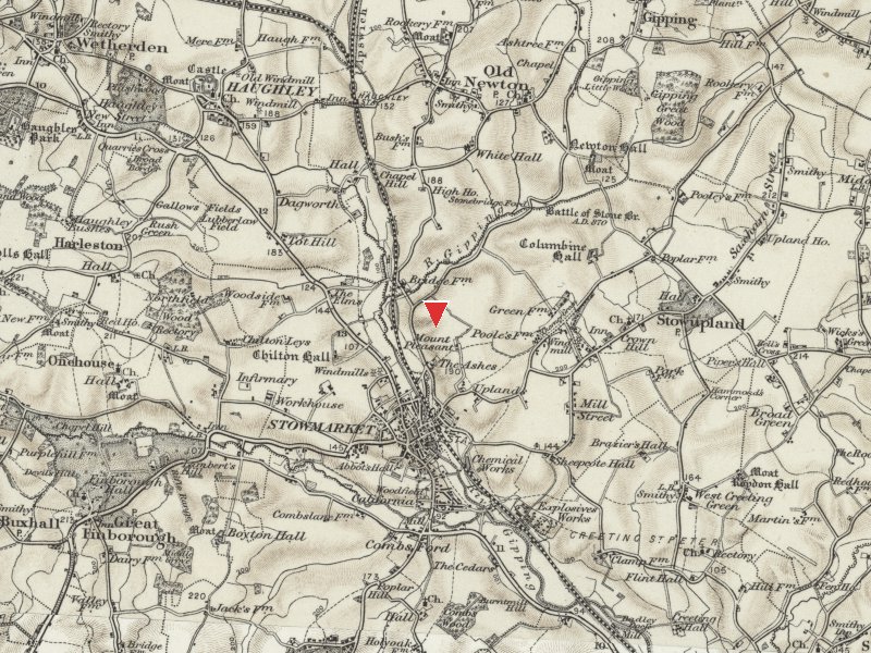 Bury St. Edmonds. Ordnance Survey one-inch Hills edition, 1885–1903 (explore at the National Library of Scotland)